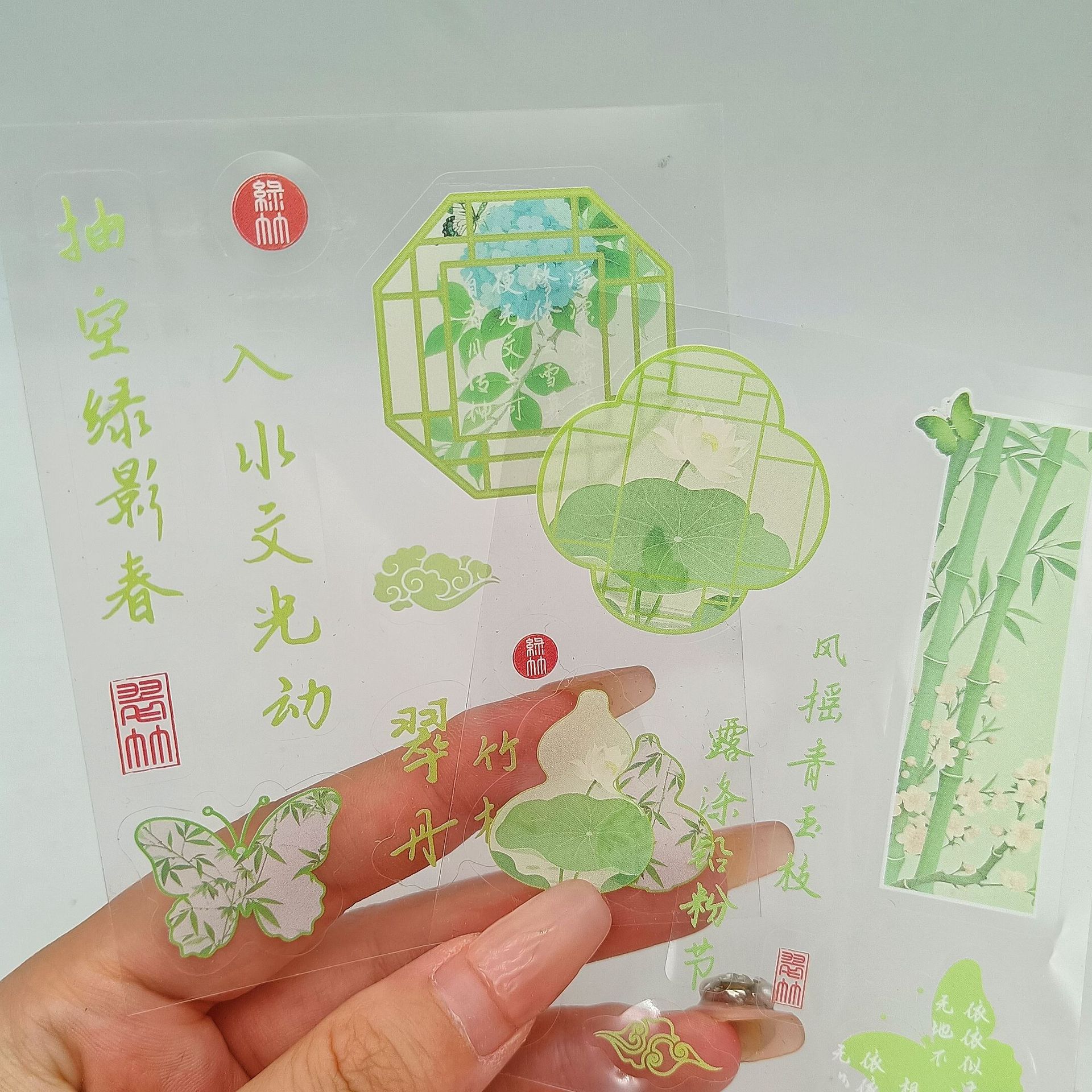 • 고대 스타일 녹색 대나무 PET 스티커 [대량]