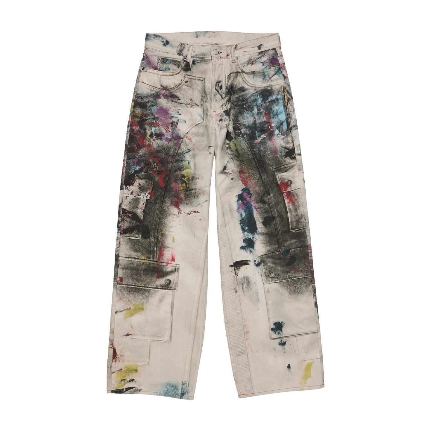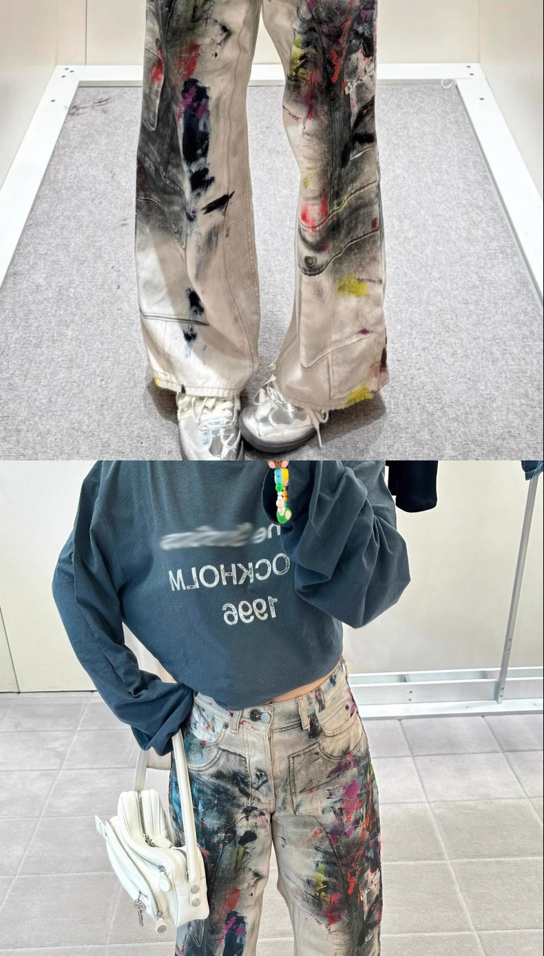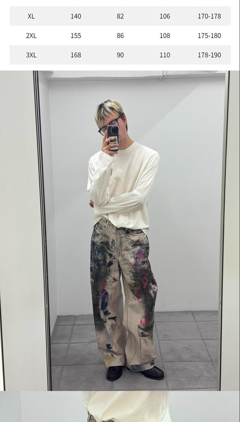 페인터 그래피티 청바지 캐주얼 루즈 디지털 직접 인쇄 더티 디스트레스드 바지 남성용