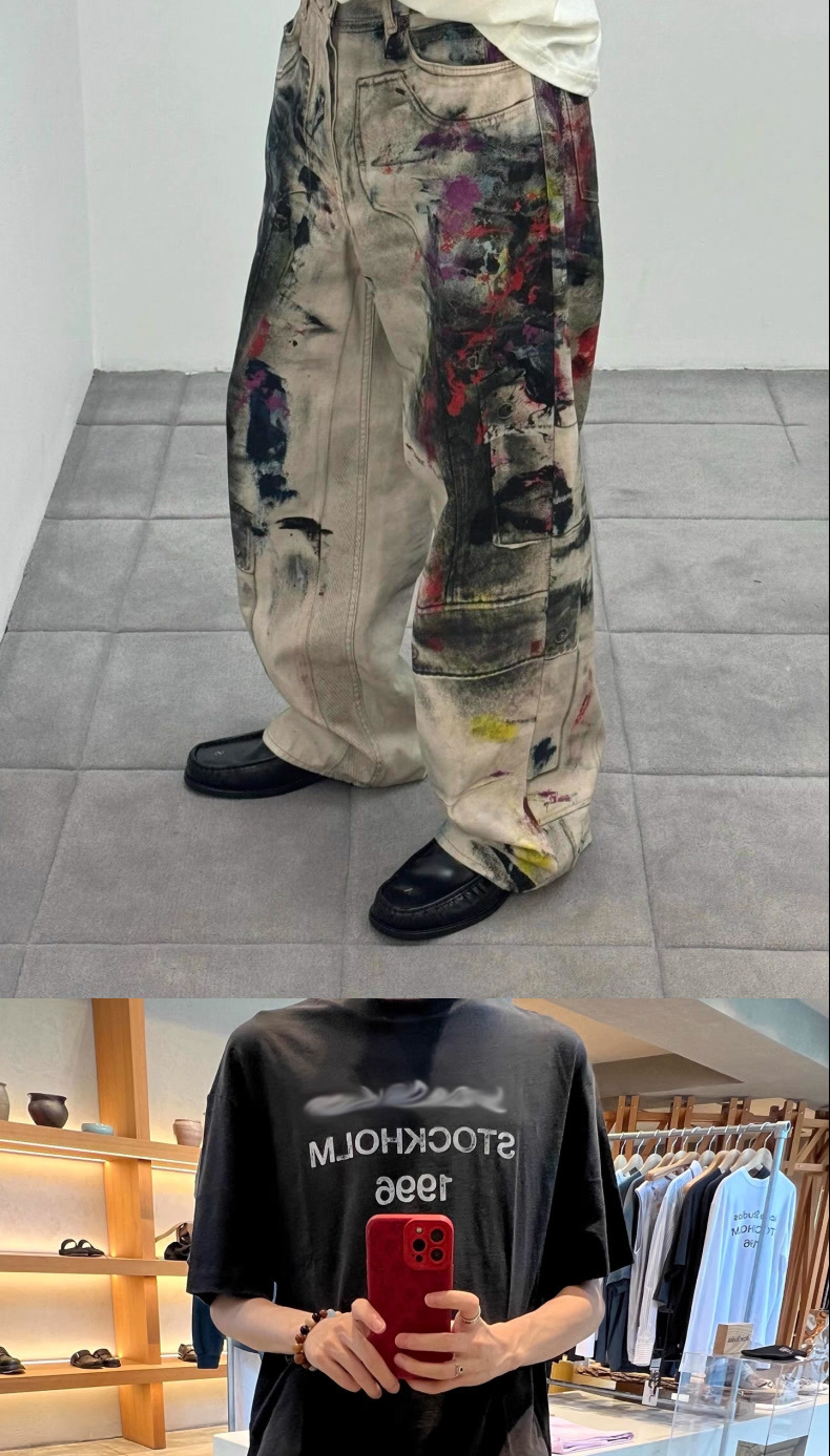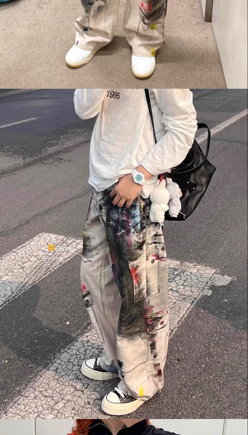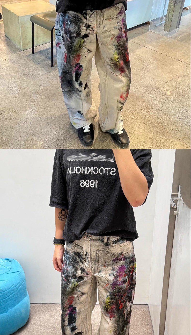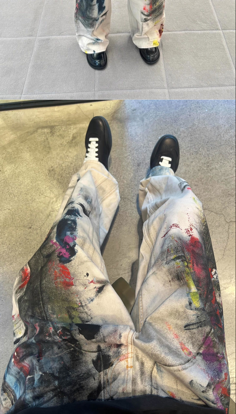 페인터 그래피티 청바지 캐주얼 루즈 디지털 직접 인쇄 더티 디스트레스드 바지 남성용스토어 가기