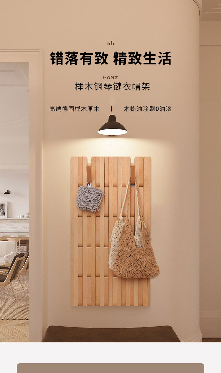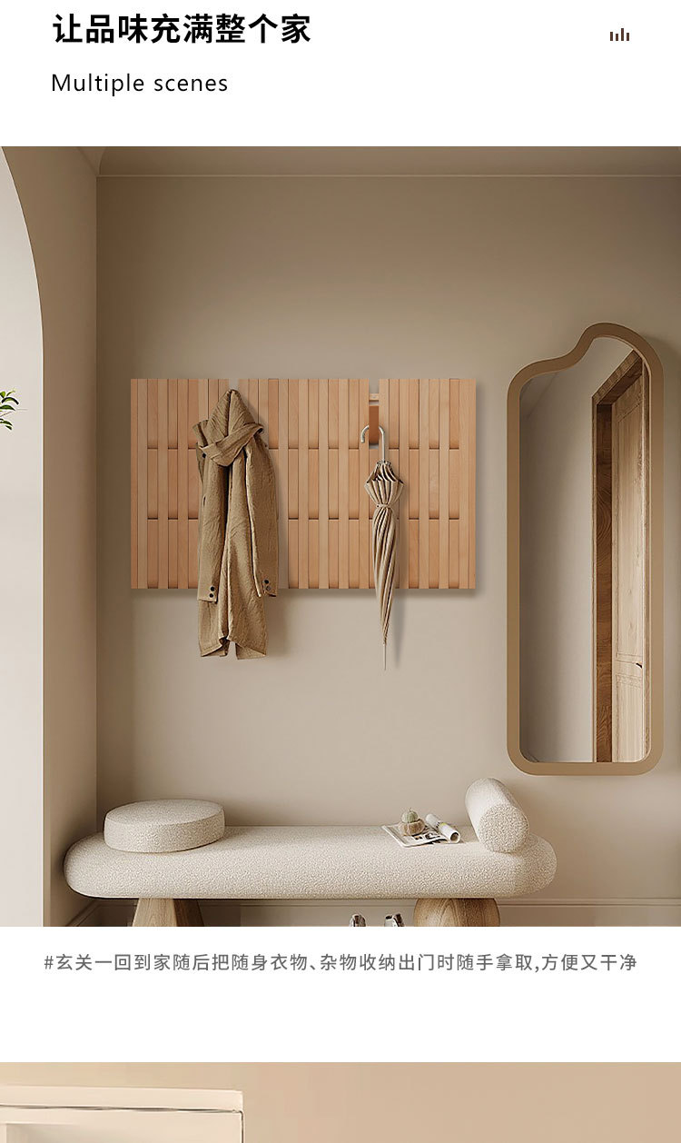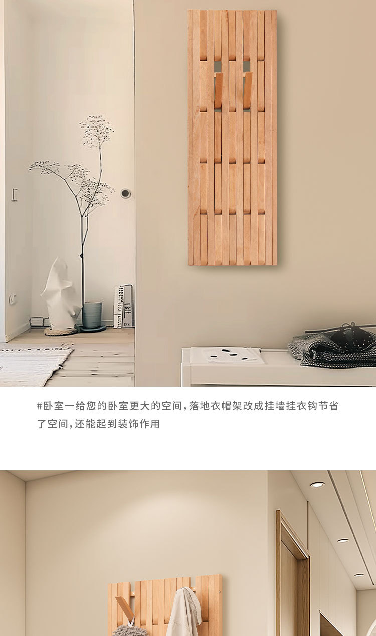 입구 문 뒤에 벽걸이형 옷걸이를 갖춘 너도밤나무 피아노 건반 옷걸이, 원목 옷걸이, 초박형 현관 수납 공간스토어 가기
