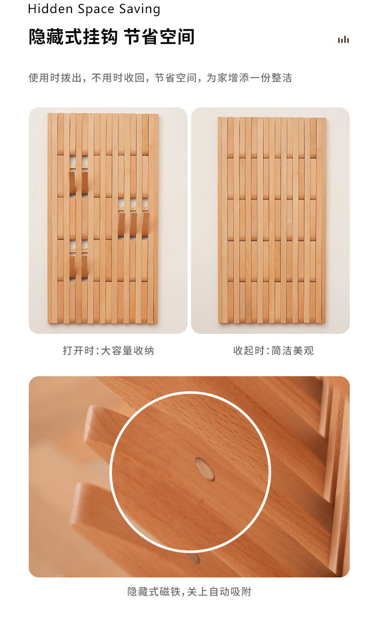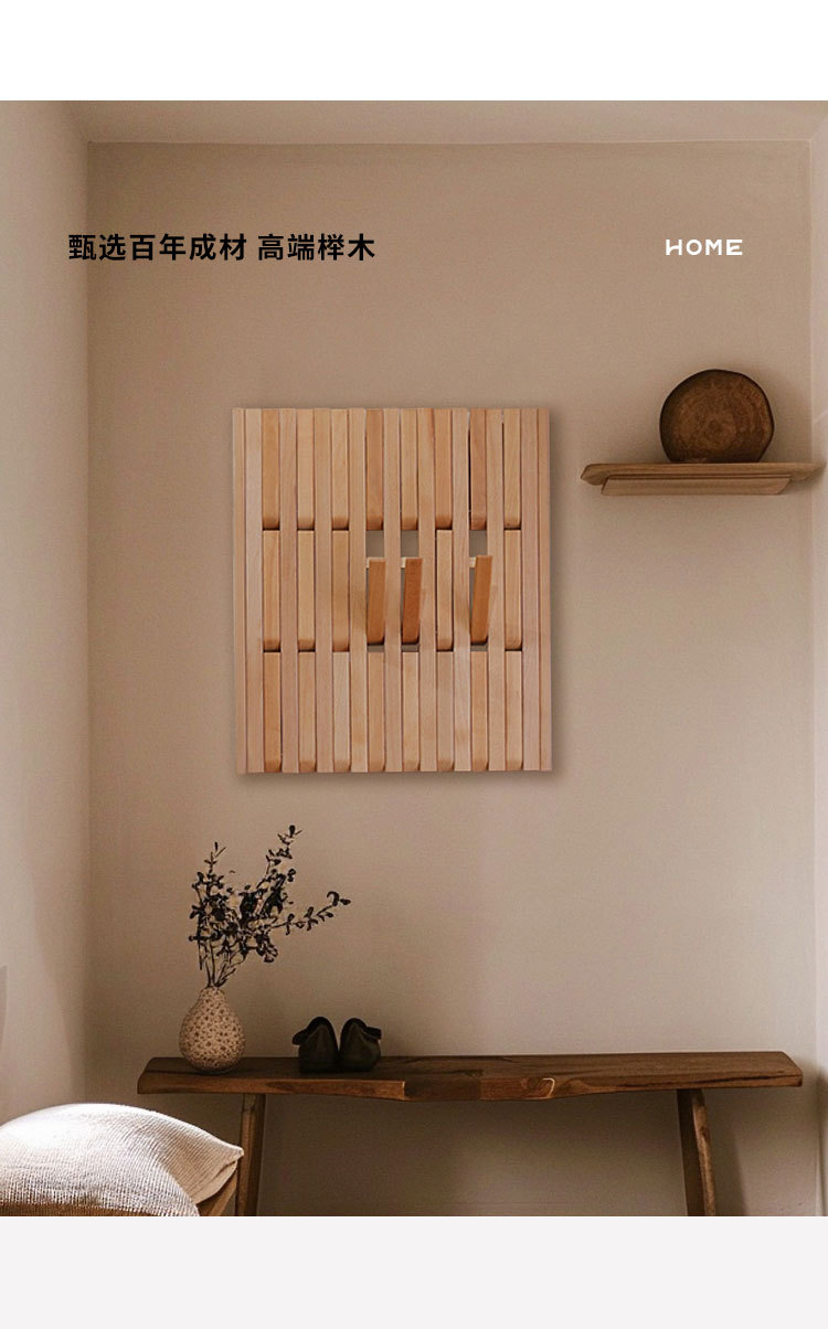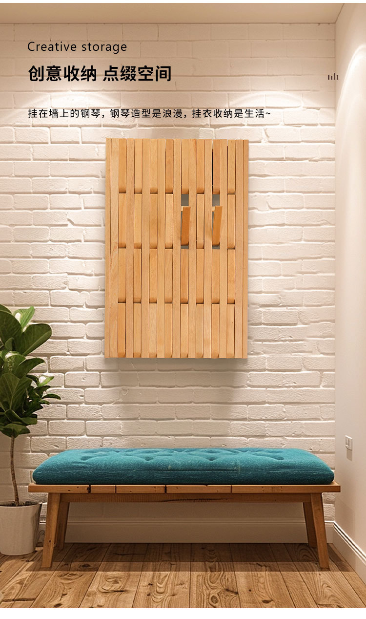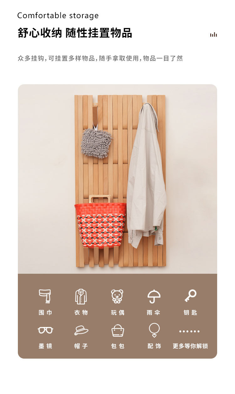 입구 문 뒤에 벽걸이형 옷걸이를 갖춘 너도밤나무 피아노 건반 옷걸이, 원목 옷걸이, 초박형 현관 수납 공간스토어 가기