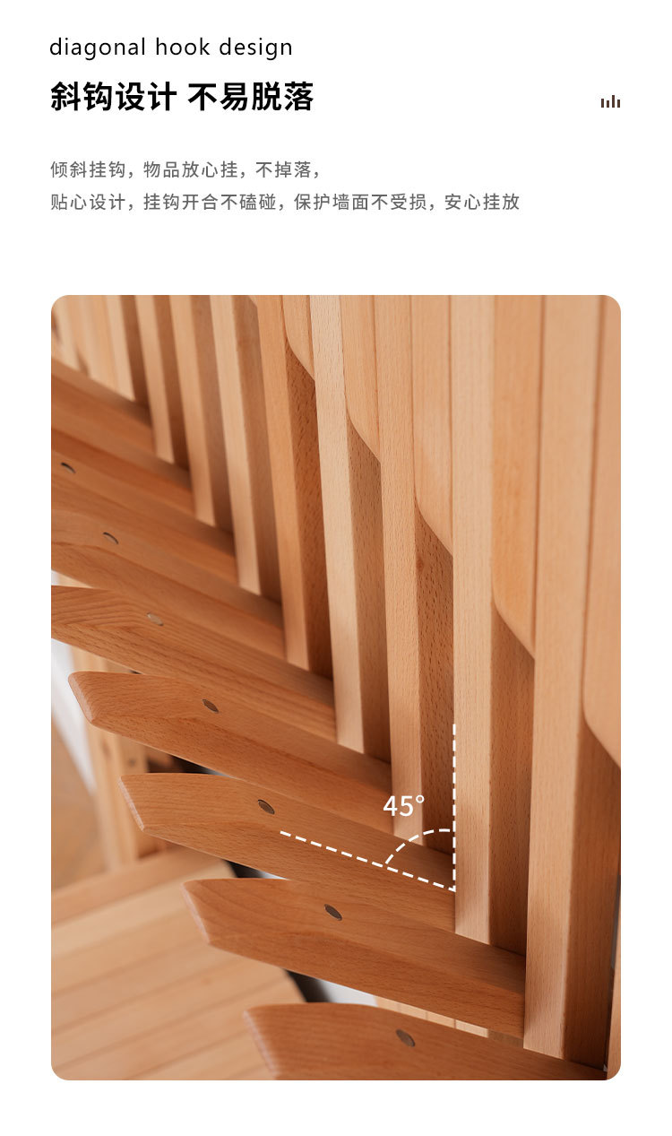 입구 문 뒤에 벽걸이형 옷걸이를 갖춘 너도밤나무 피아노 건반 옷걸이, 원목 옷걸이, 초박형 현관 수납 공간