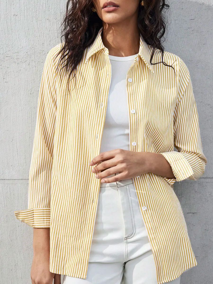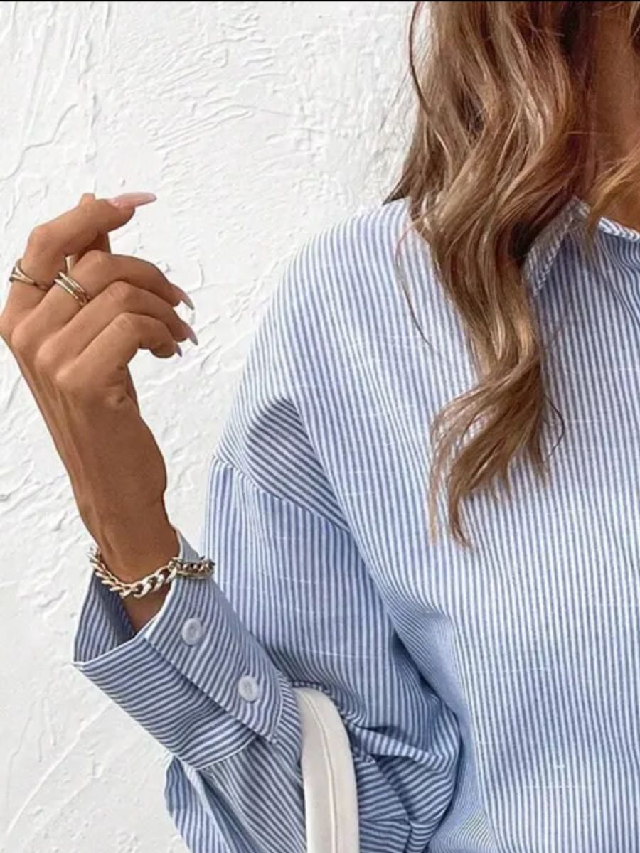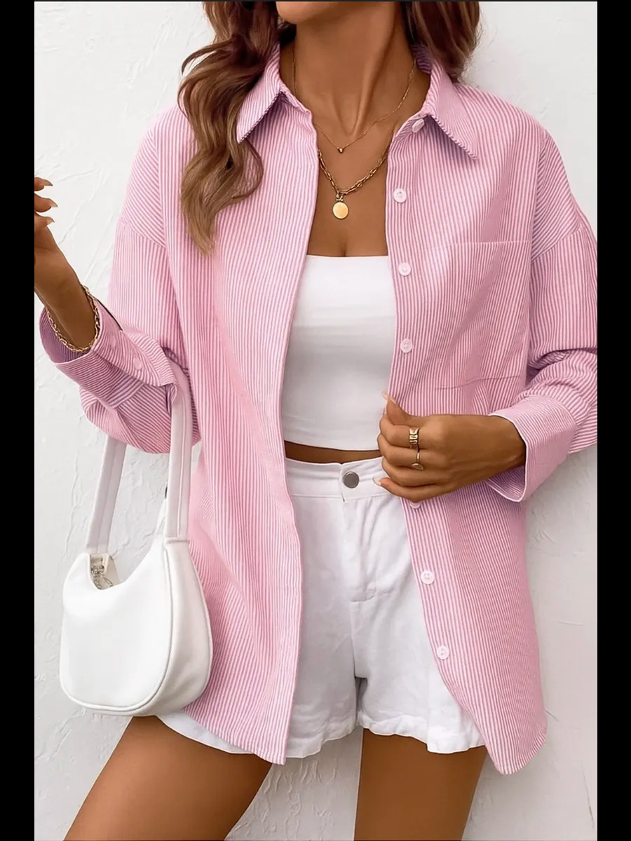 스트라이프 새 여성 셔츠 2025 유럽과 미국의 대외 무역 국경 간 아마존 옷깃 버튼 긴팔 카디건 여름 셔츠스토어 가기