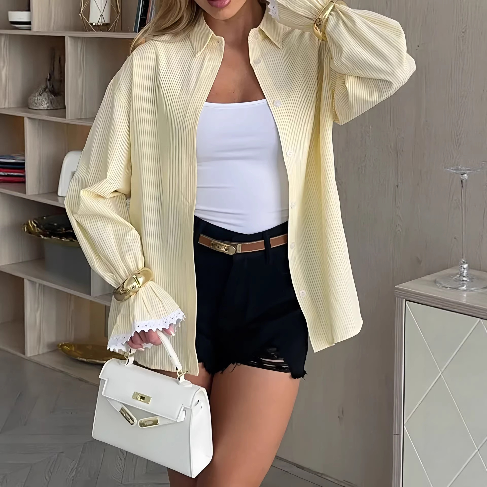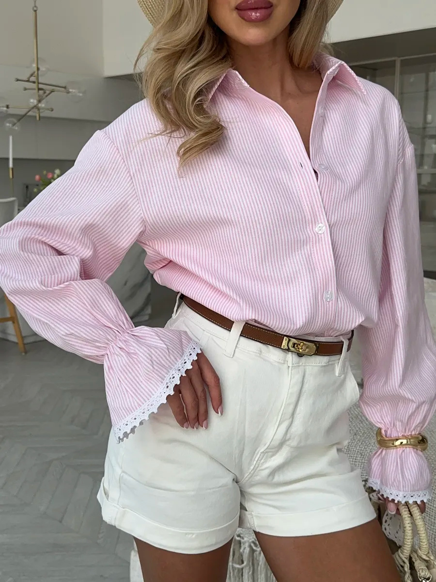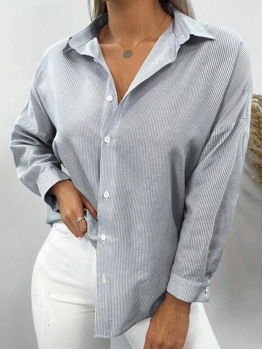 스트라이프 새 여성 셔츠 2025 유럽과 미국의 대외 무역 국경 간 아마존 옷깃 버튼 긴팔 카디건 여름 셔츠스토어 가기