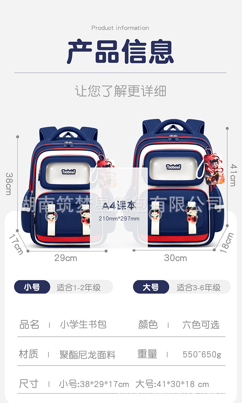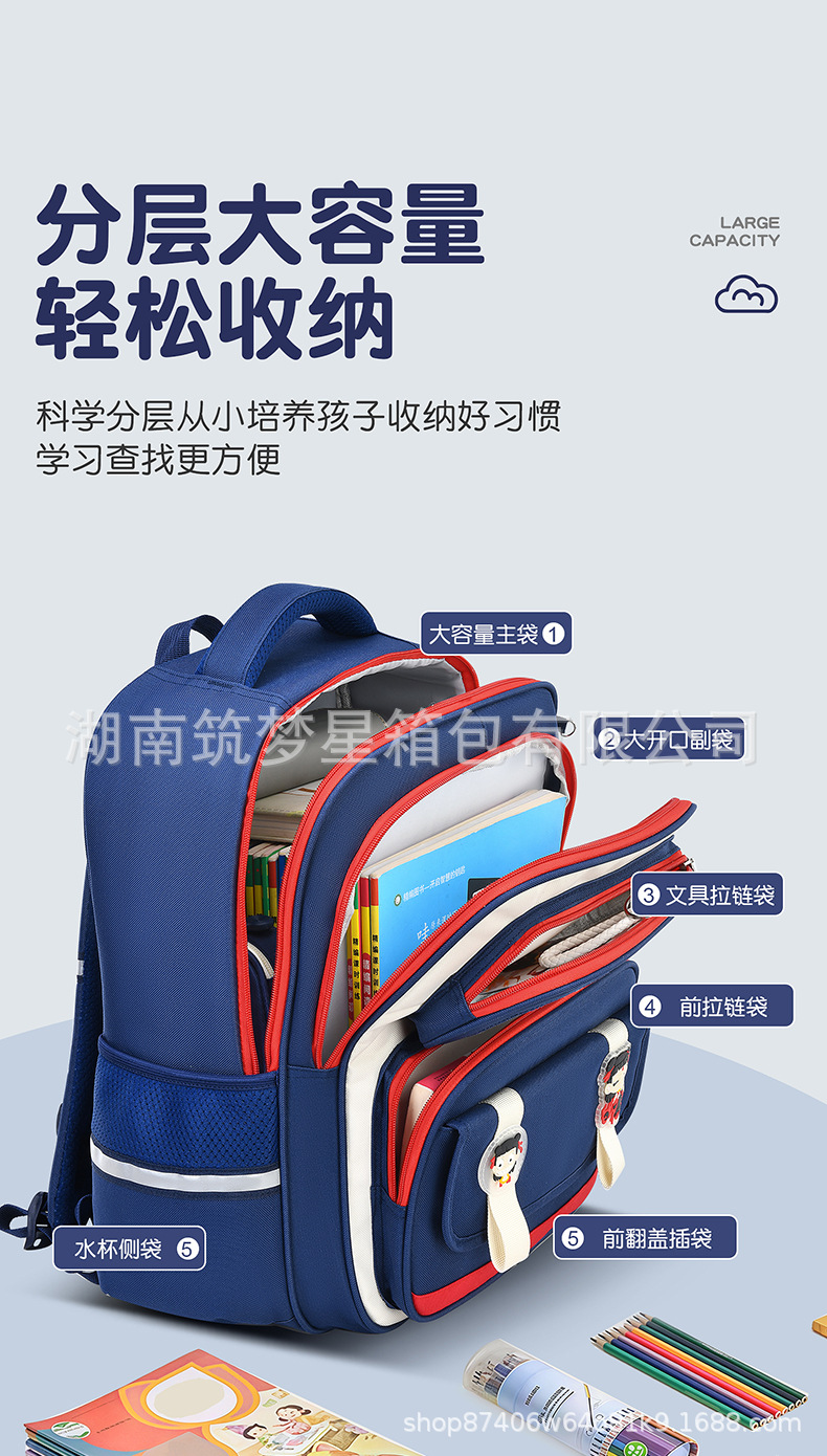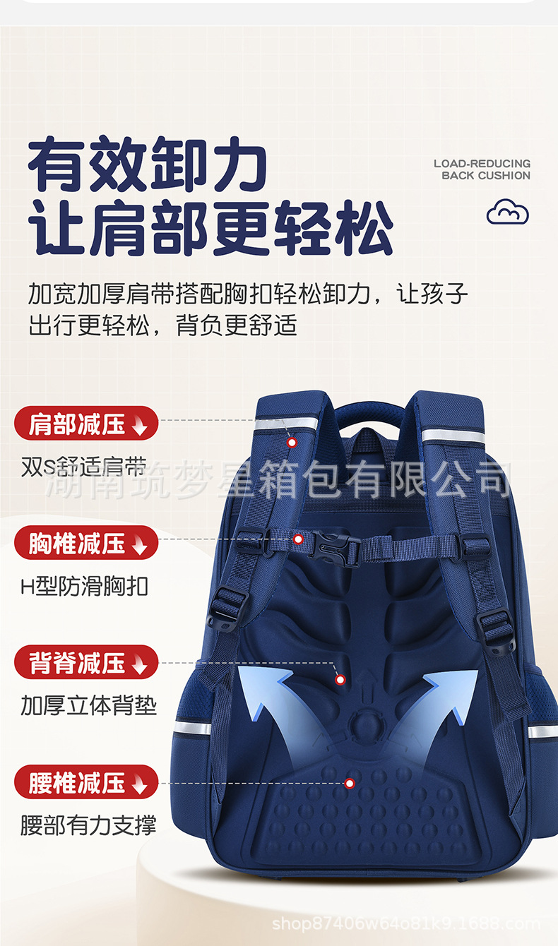 1, 3~6학년 남학생과 여학생을 위한 새로운 초등학교 책가방, 초경량 척추 보호 어린이 부담 경감 배낭