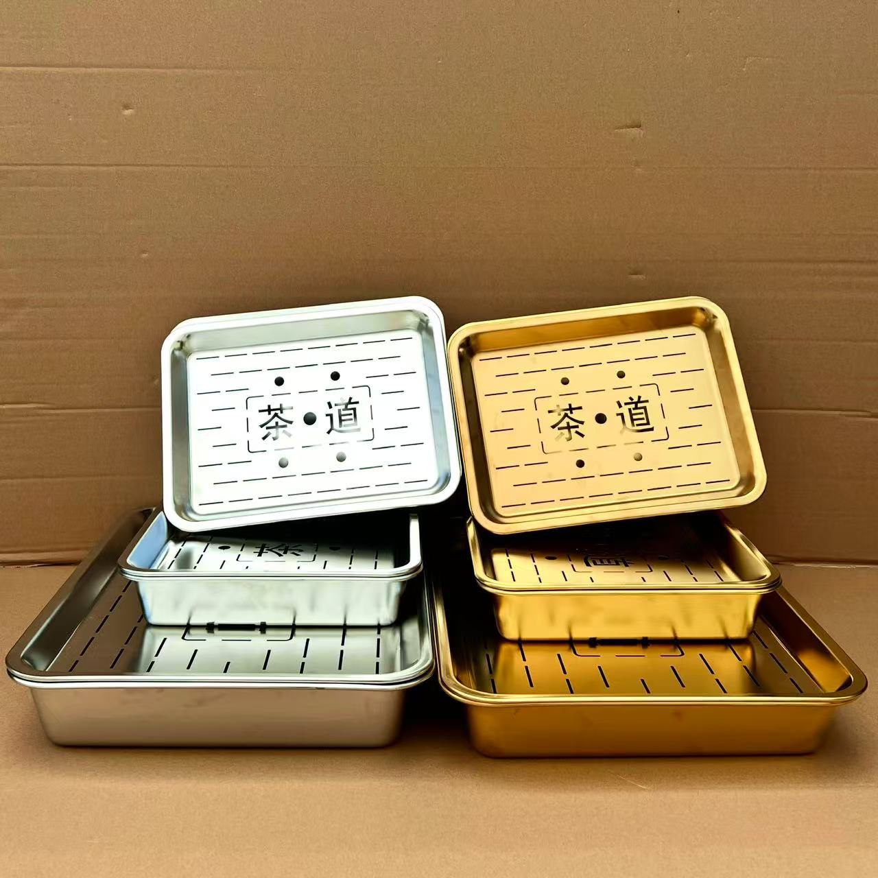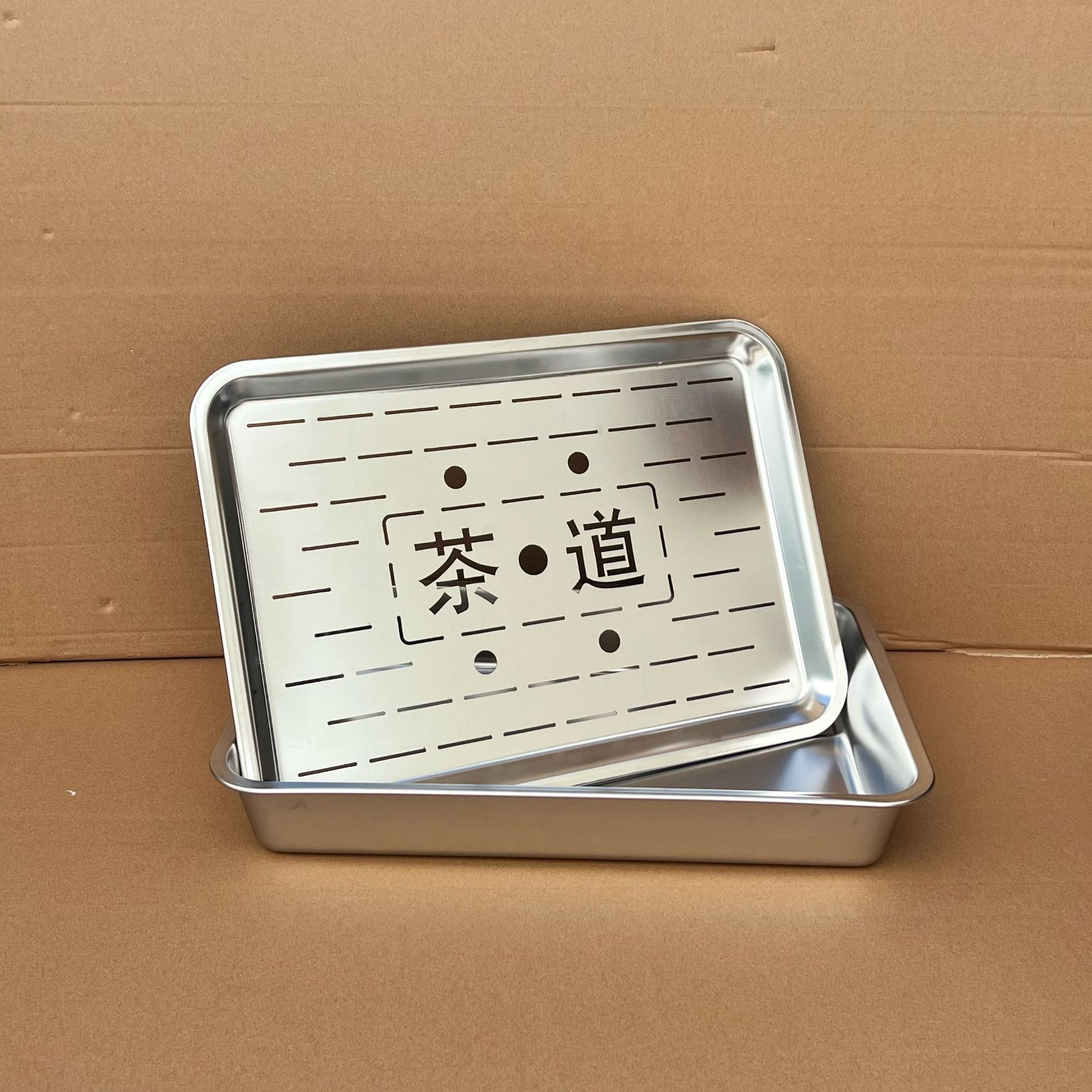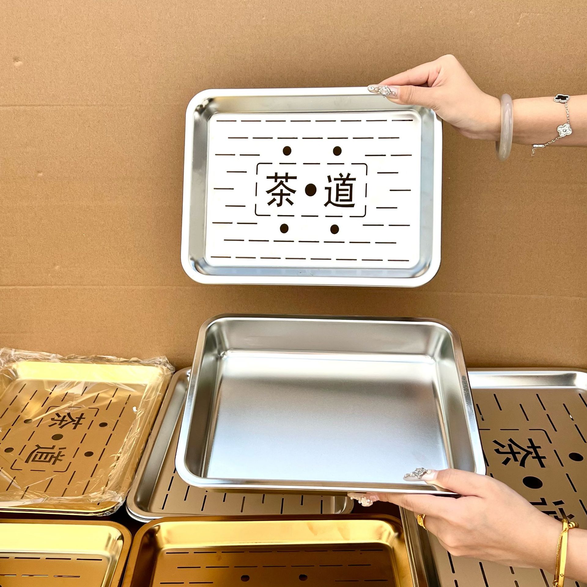 304 스테인레스 스틸 두꺼운 간단한 중국 차 트레이 직사각형 트레이 만두 트레이 가정용 배수 트레이 워터 컵 트레이
