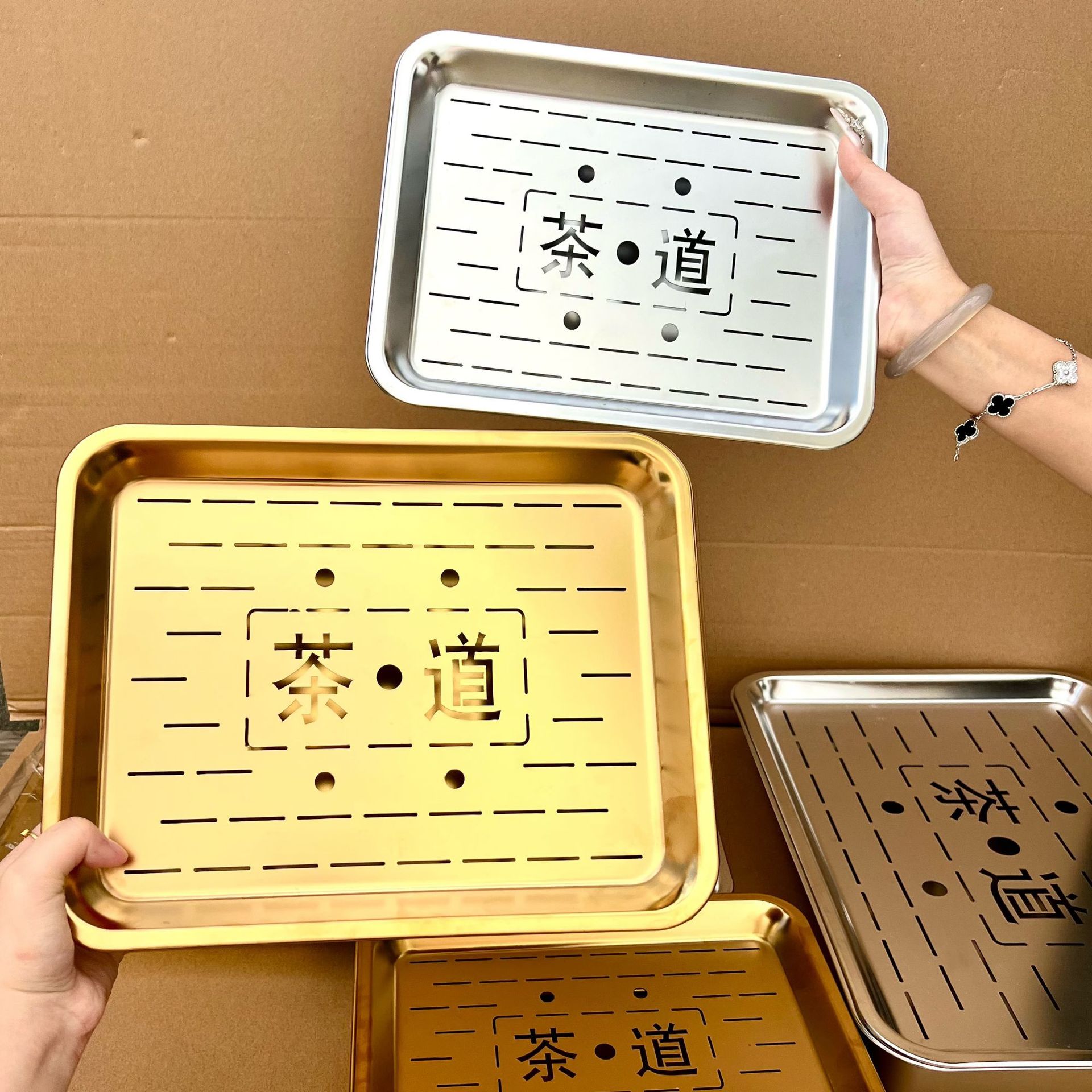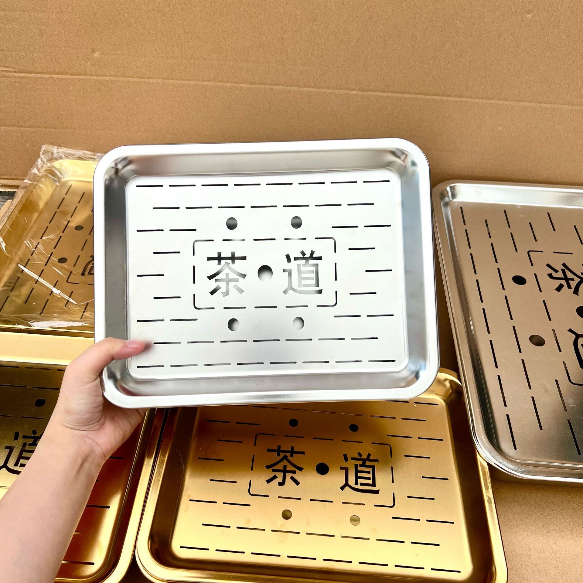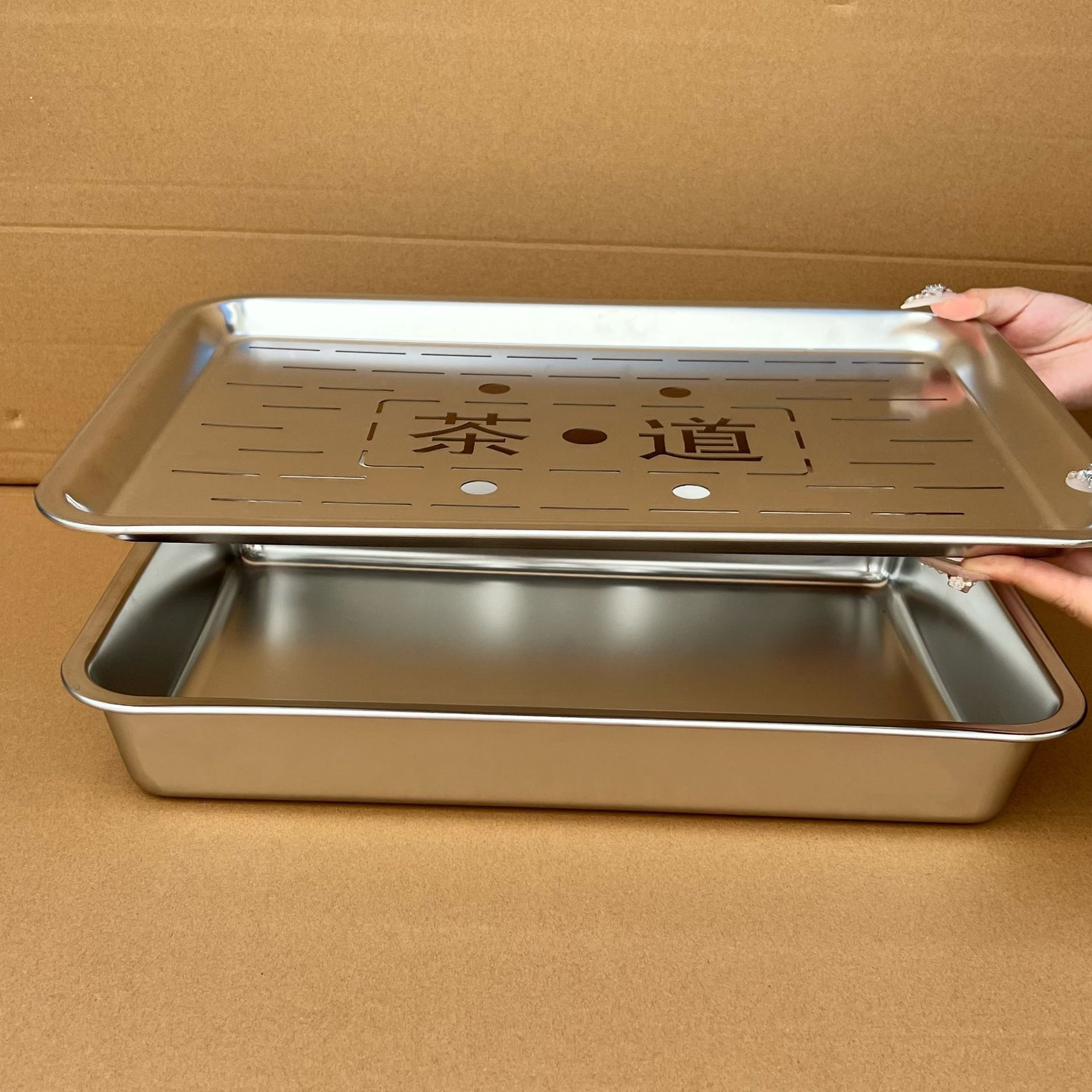 304 스테인레스 스틸 두꺼운 간단한 중국 차 트레이 직사각형 트레이 만두 트레이 가정용 배수 트레이 워터 컵 트레이