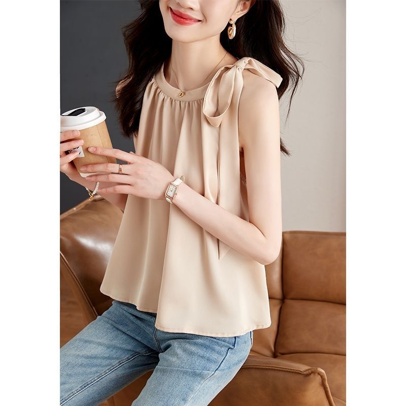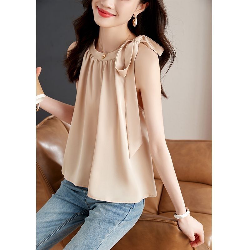 레이디 스타일 여성용 다용도 아우터 패셔너블 쉬폰 셔츠 2025 여름 신작 스위트 솔리드 컬러 홀터넥 캐미솔 탑