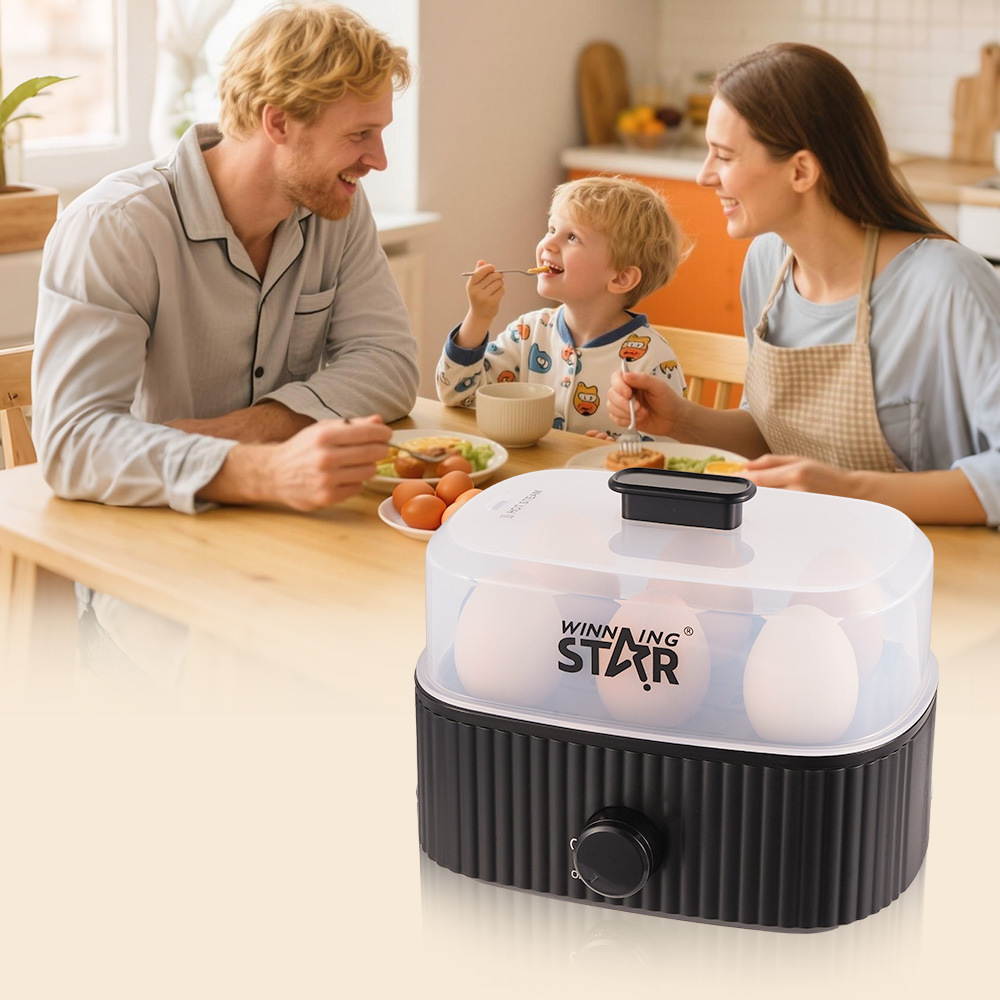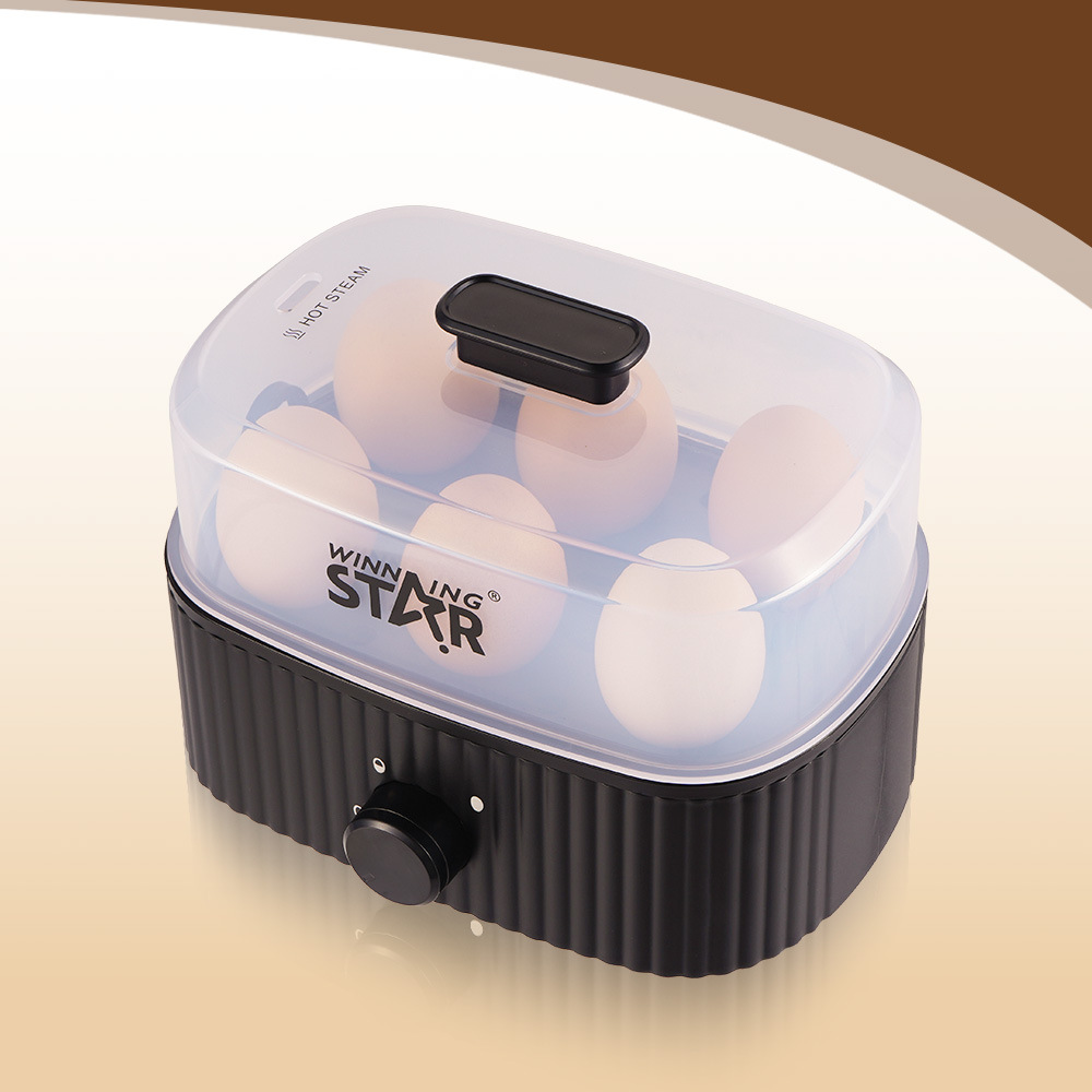 蒸蛋器,ST-6907,WINNING STAR品牌,电压:220-240V电流:50/60Hz,实际功率:300W。产品尺寸:196*151*153mm,彩盒尺寸:202*180*155mm,颜色:黑色