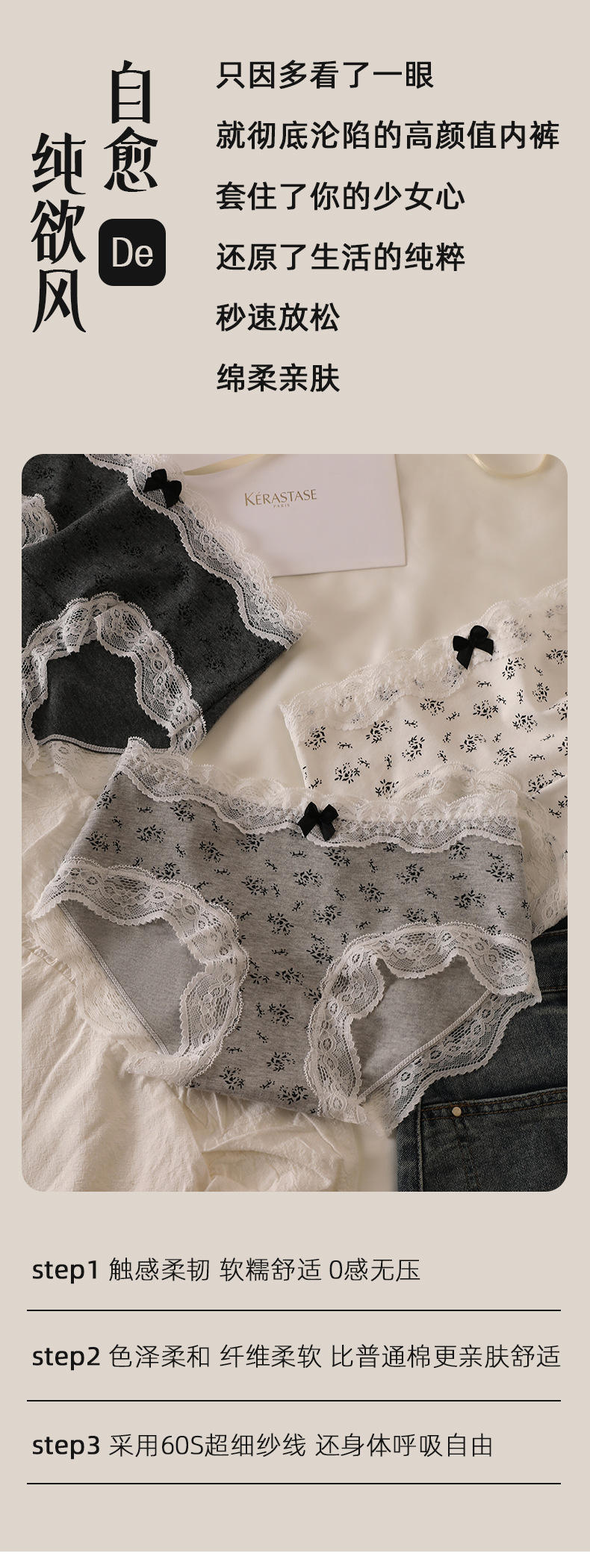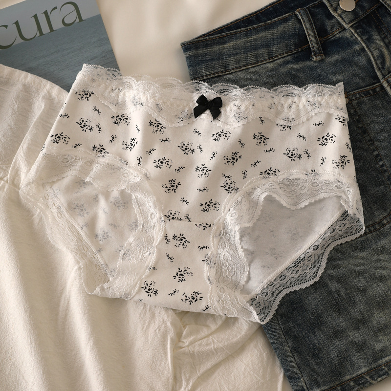 여성용 프렌치 레트로 속옷 10A 항균 베이비 코튼 귀여운 소녀 로우 웨이스트 레이스 코튼 가랑이 팬티스토어 가기