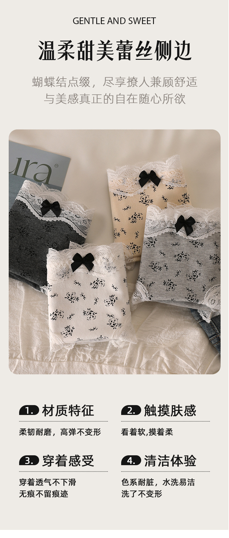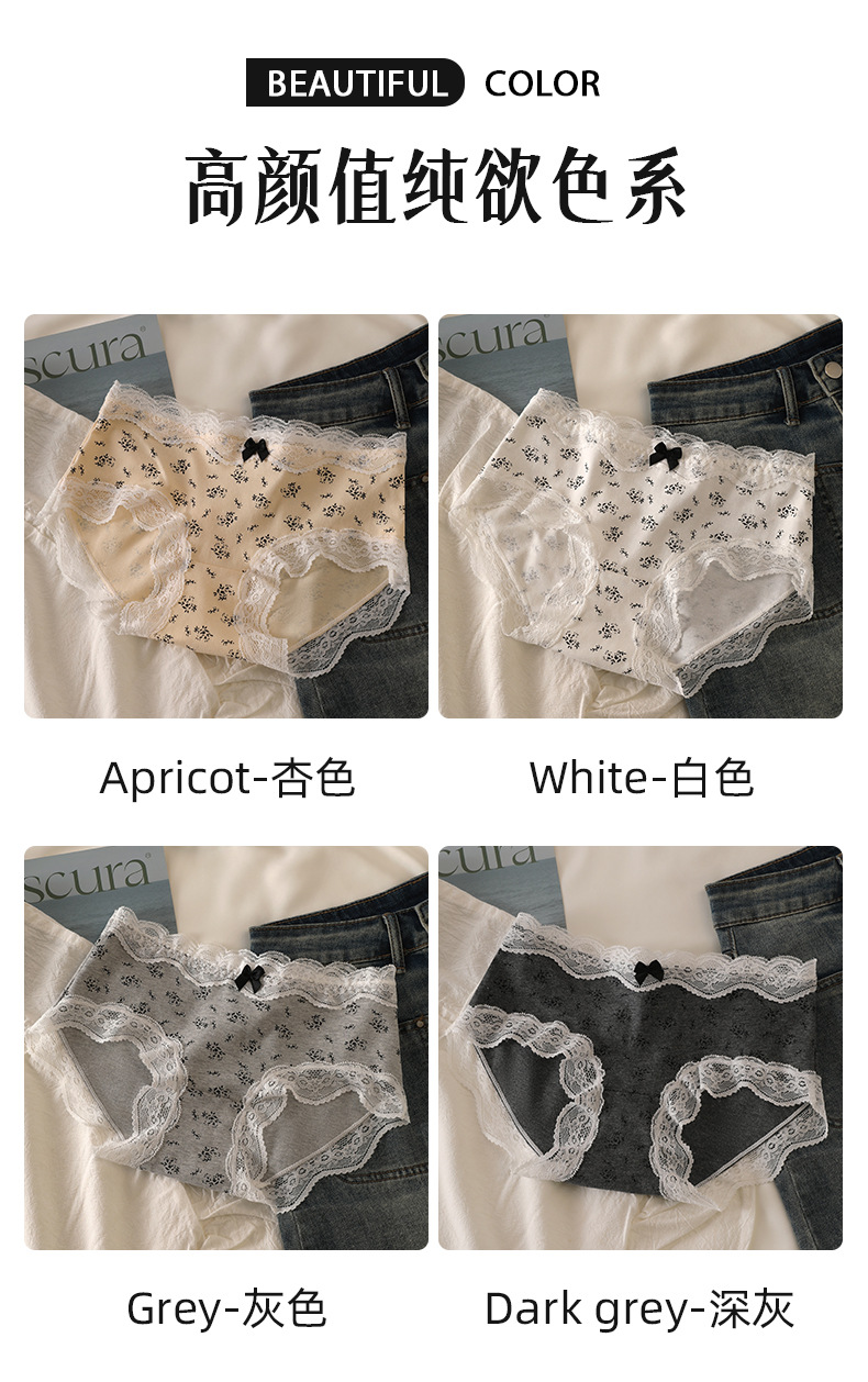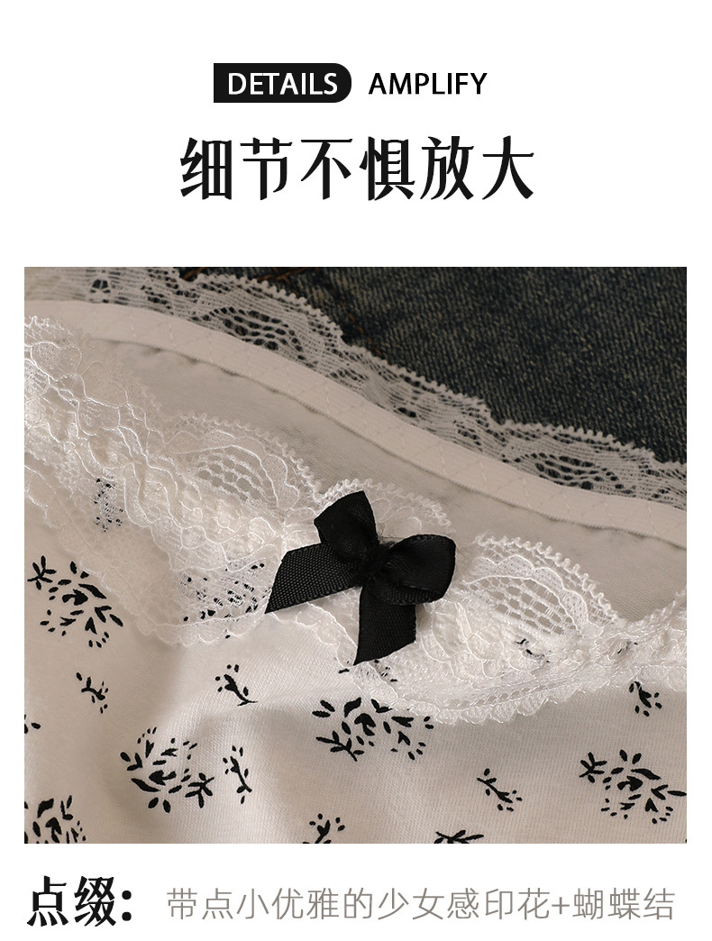 여성용 프렌치 레트로 속옷 10A 항균 베이비 코튼 귀여운 소녀 로우 웨이스트 레이스 코튼 가랑이 팬티