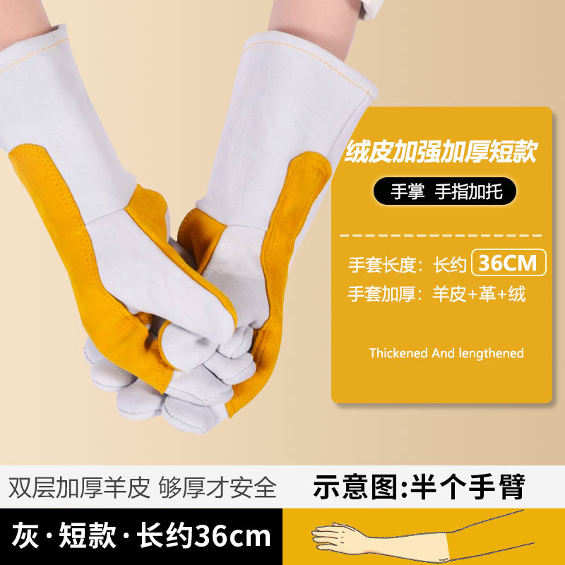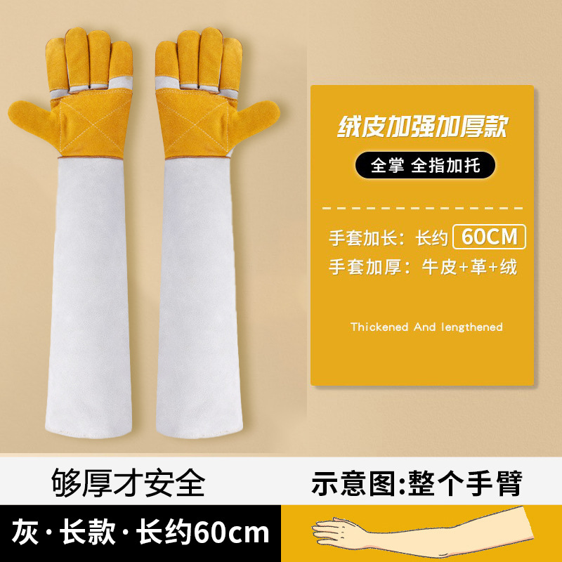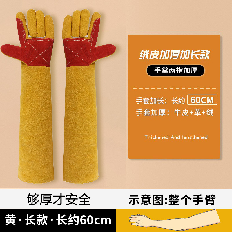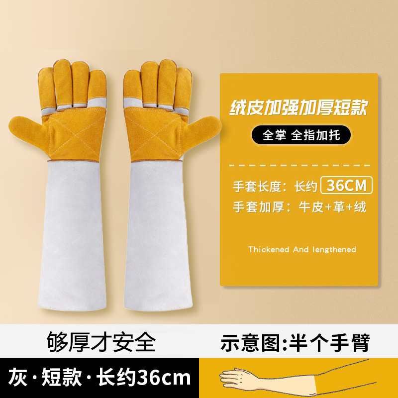 • 전체 가죽 물림 방지 장갑, 짧은 36cm [이중 두꺼운/노란색 및 드래그] [방수 아님]