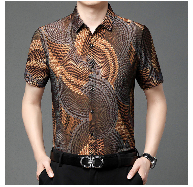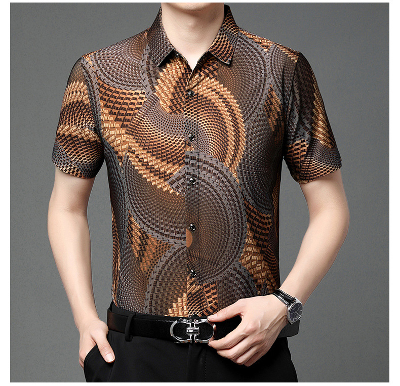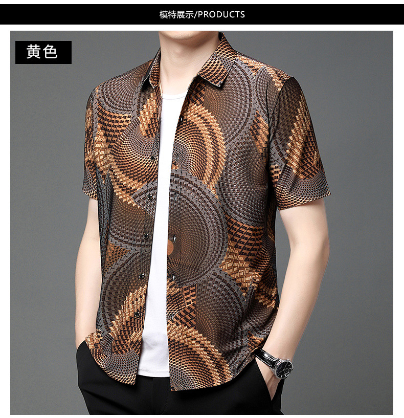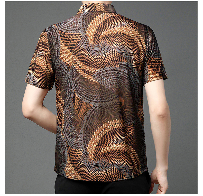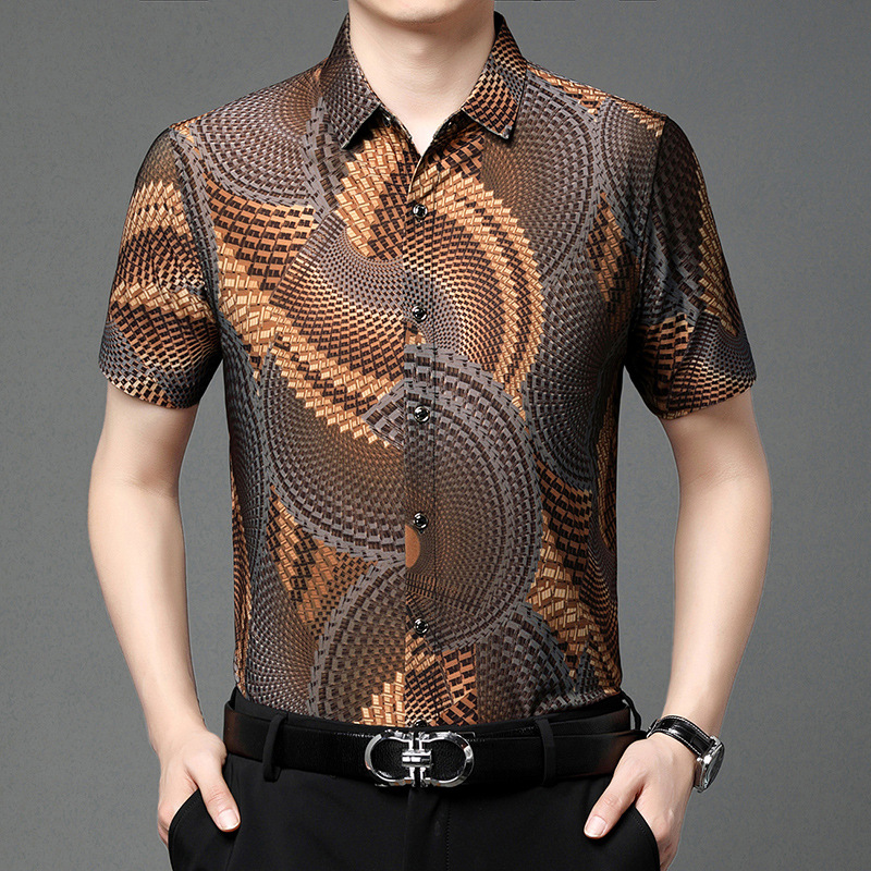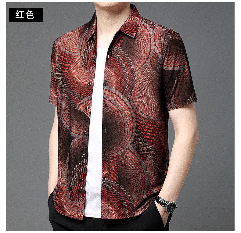 여름 남성 반팔 셔츠, 패셔너블한 맞춤형 프린트 남성 상의, 중년 남성용 얇은 아이스 실크 반팔 셔츠스토어 가기