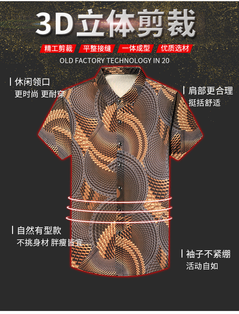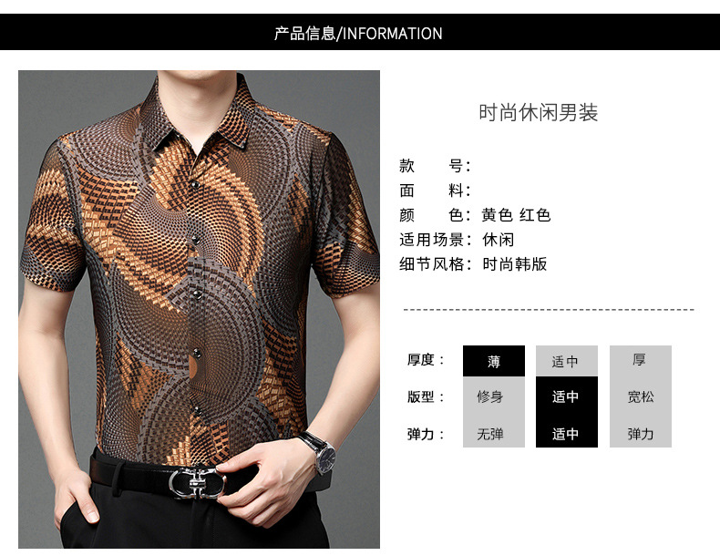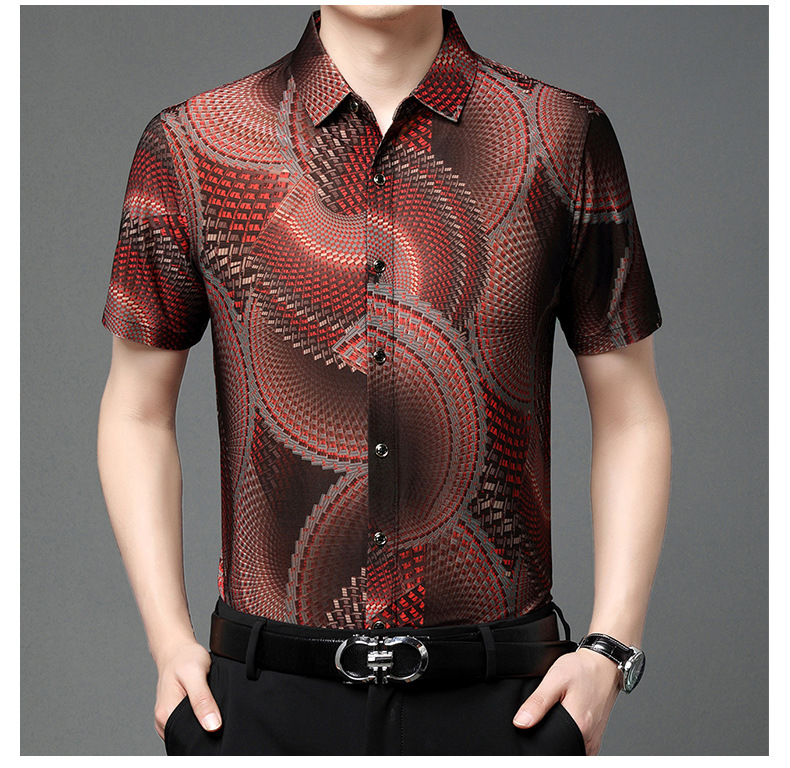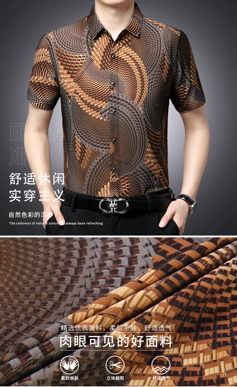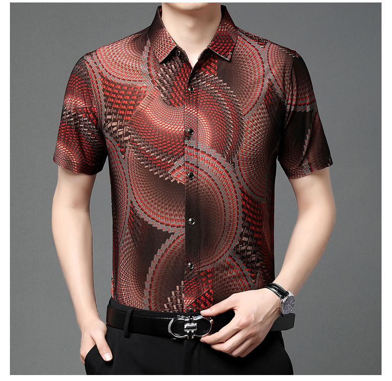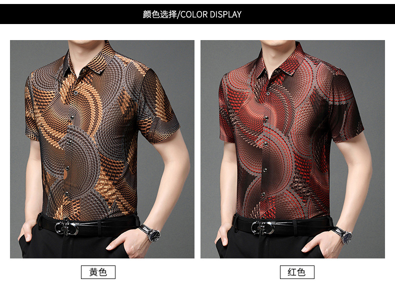 여름 남성 반팔 셔츠, 패셔너블한 맞춤형 프린트 남성 상의, 중년 남성용 얇은 아이스 실크 반팔 셔츠스토어 가기
