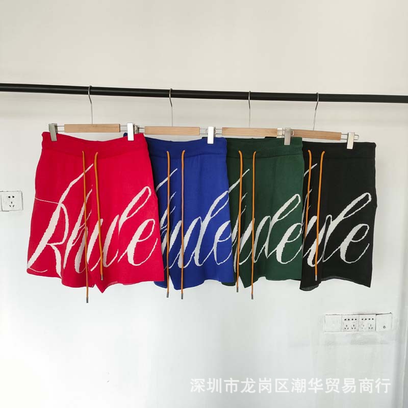 여름 새로운 유럽과 미국의 하이 스트리트 RHUDE 문자 인쇄 Drawstring 스포츠 및 레저 남성과 여성의 5 점 반바지 도매스토어 가기