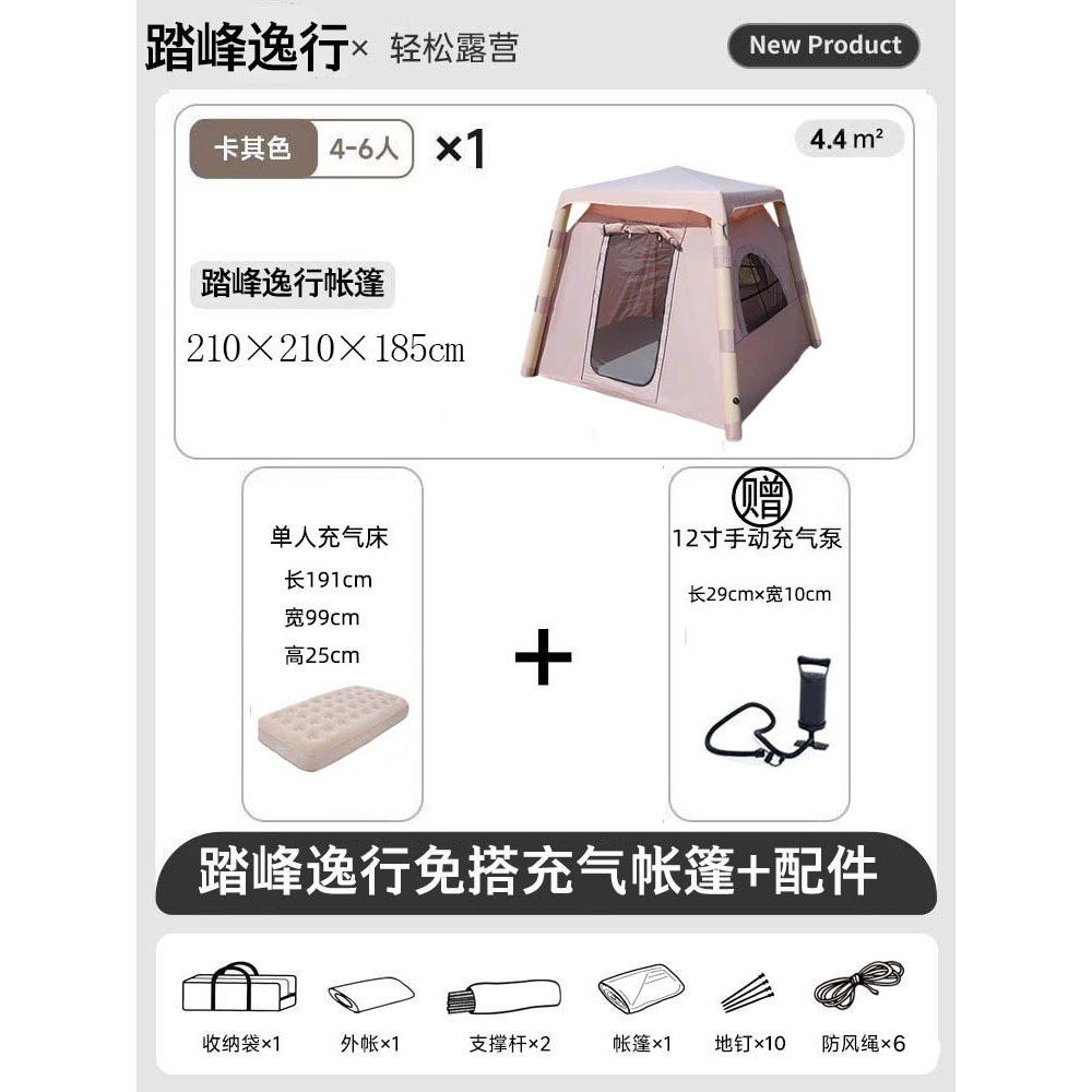 • 4코너 텐트 + 싱글 침대 + 전동 펌프 + 핸드백