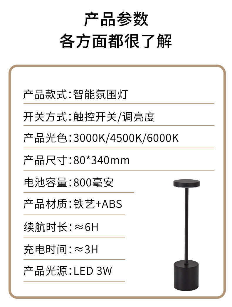 I자형 테이블 램프 바 클리어 바 카페 분위기 조명 침대 옆 장식품 야간 조명 USB 충전식 터치 테이블 램프