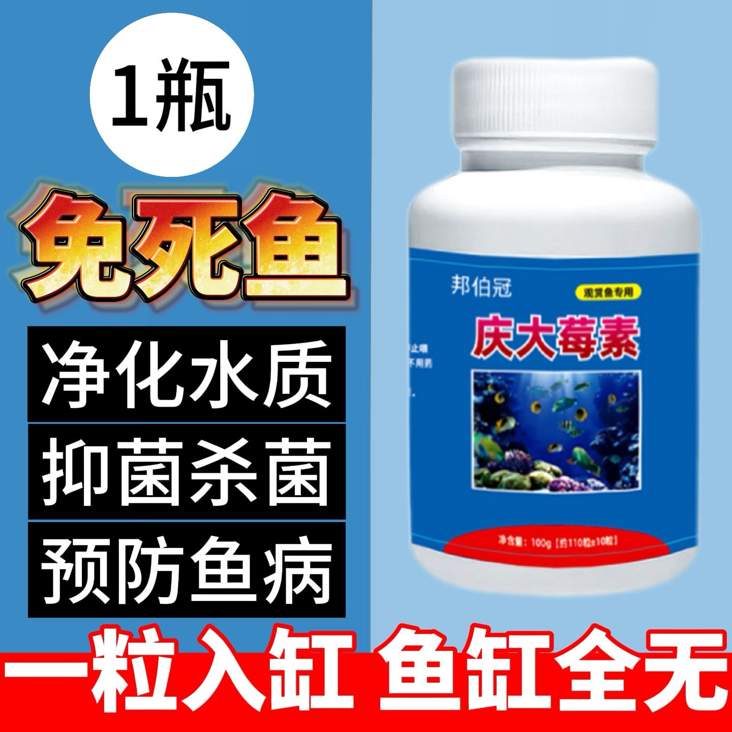 청대균 특수식물성 생선, 꼬리부패, 몸부패, 흰점, 흰털, 인분해, 눈가리개, 살균, 소독, 재활, 살균