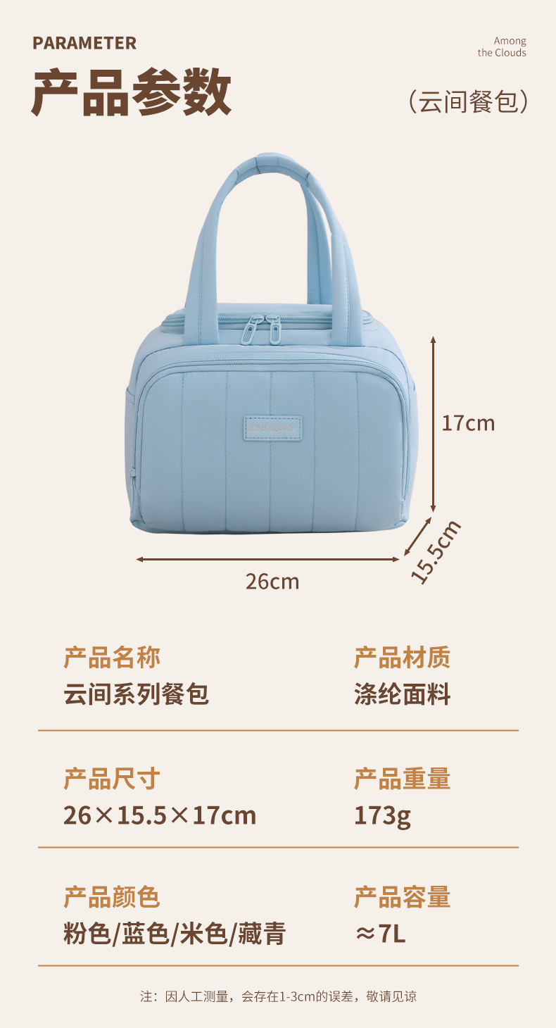 Feifan 신입생 도시락 핸드백, 보온 도시락 가방, 구름 사각형 식사 가방, 직장인 도시락 가방, 아이스 백