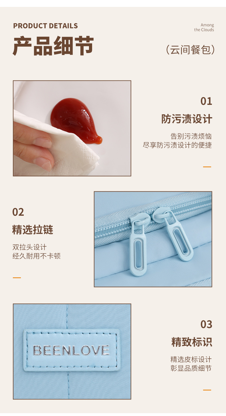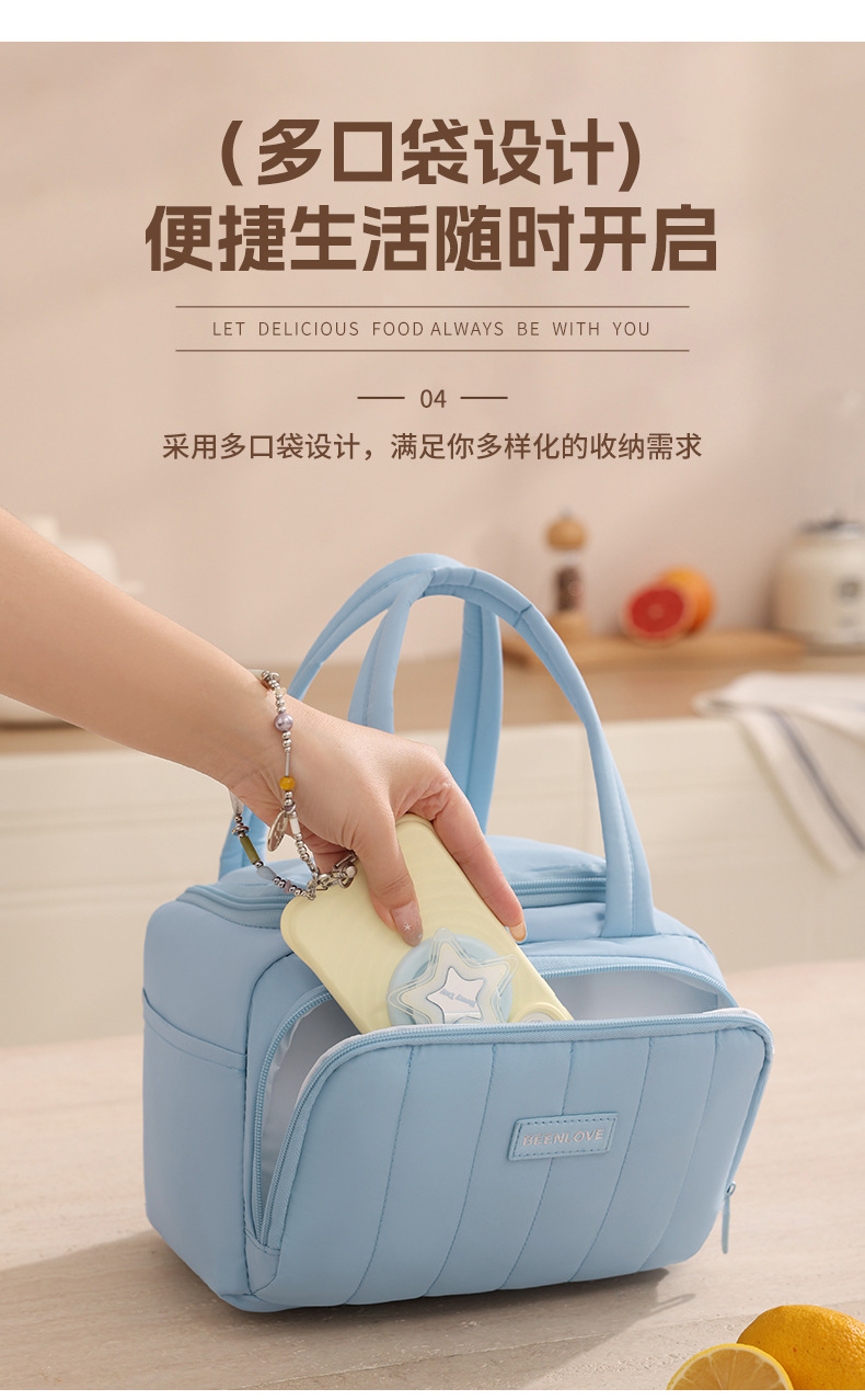 Feifan 신입생 도시락 핸드백, 보온 도시락 가방, 구름 사각형 식사 가방, 직장인 도시락 가방, 아이스 백스토어 가기