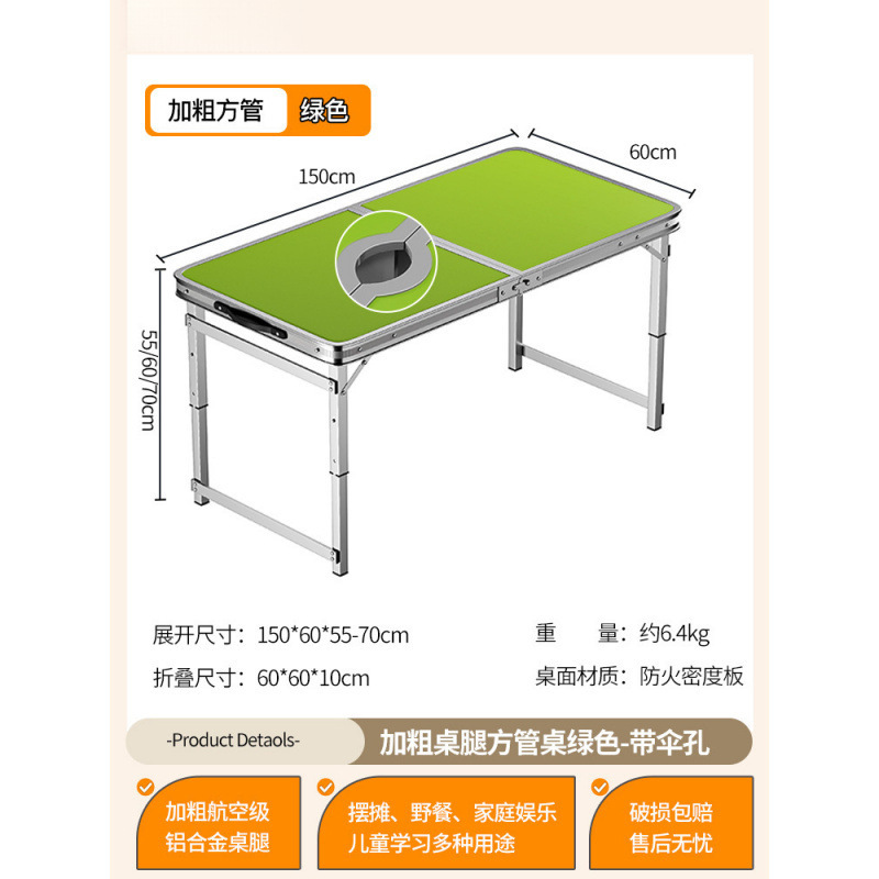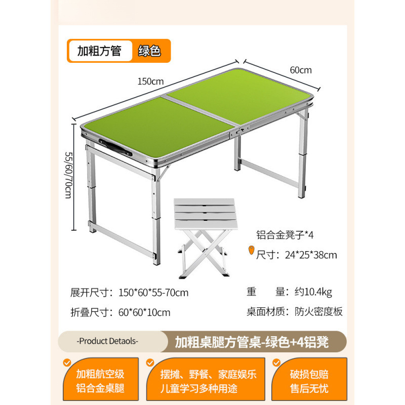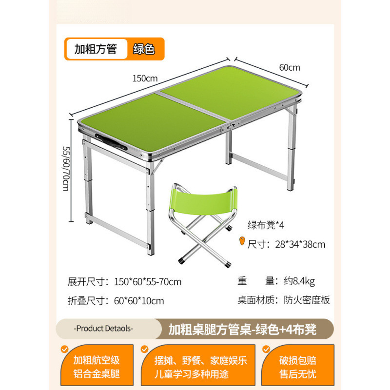 • 업그레이드된 대외 무역 품질 [업그레이드된 알루미늄 합금 사각 튜브] 150*60cm 녹색 + 알루미늄 의자 4개