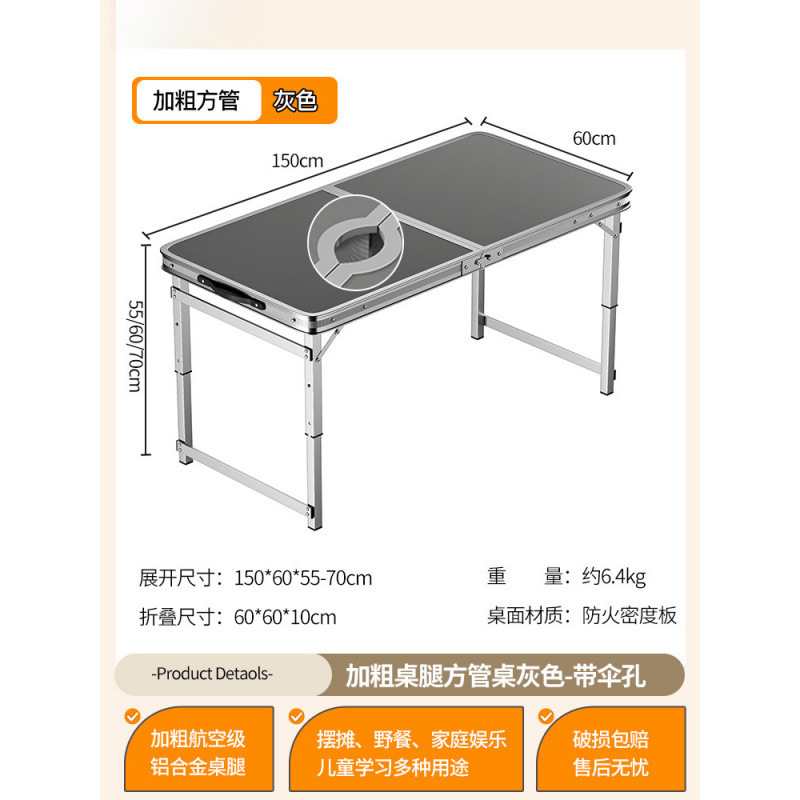 • 업그레이드된 대외 무역 품질 [업그레이드된 알루미늄 합금 사각 튜브] 150*60cm 회색 + 알루미늄 의자 4개
