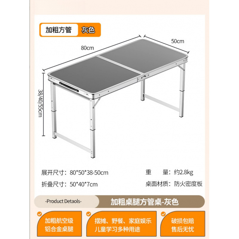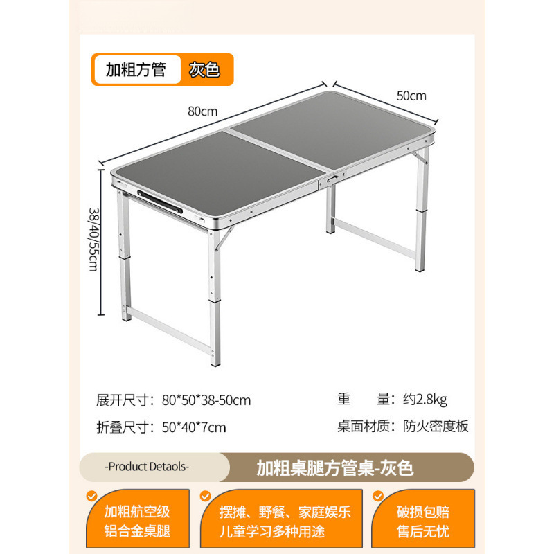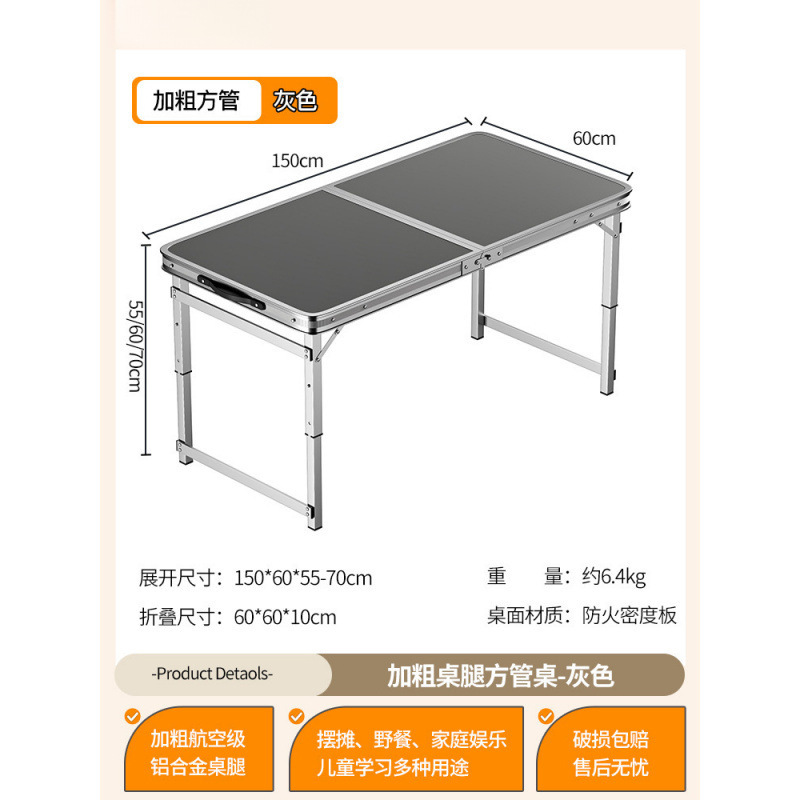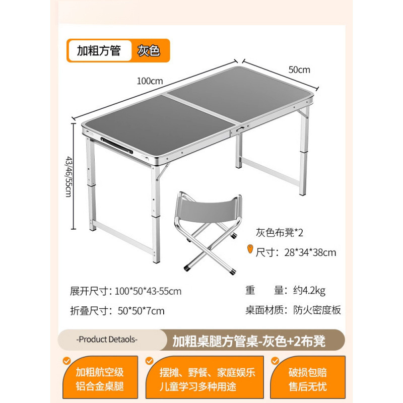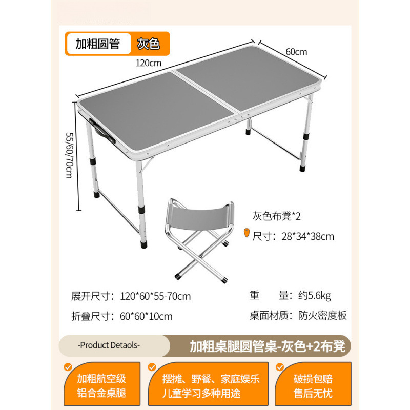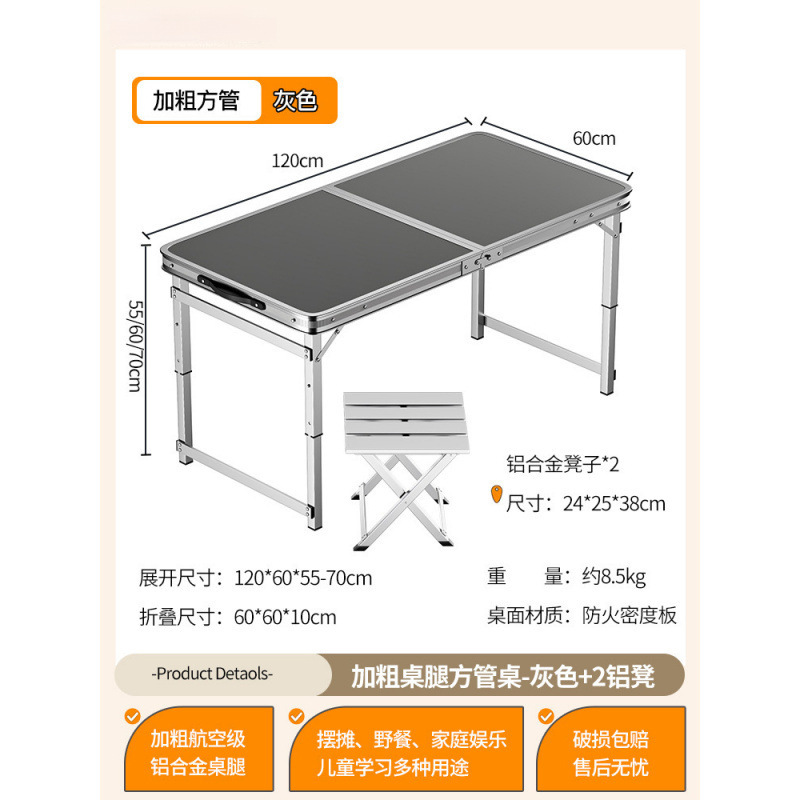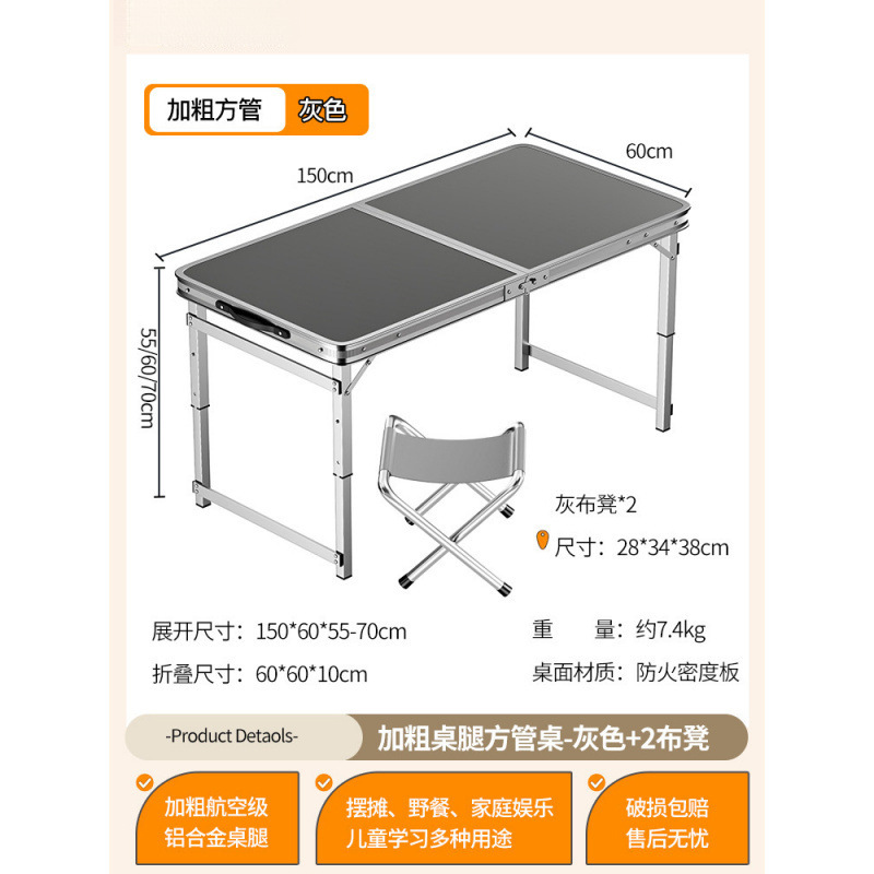 • 업그레이드된 대외 무역 품질 [업그레이드된 알루미늄 합금 사각 튜브] 120*60cm 회색 + 알루미늄 의자 2개
