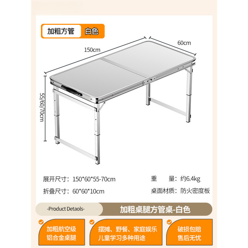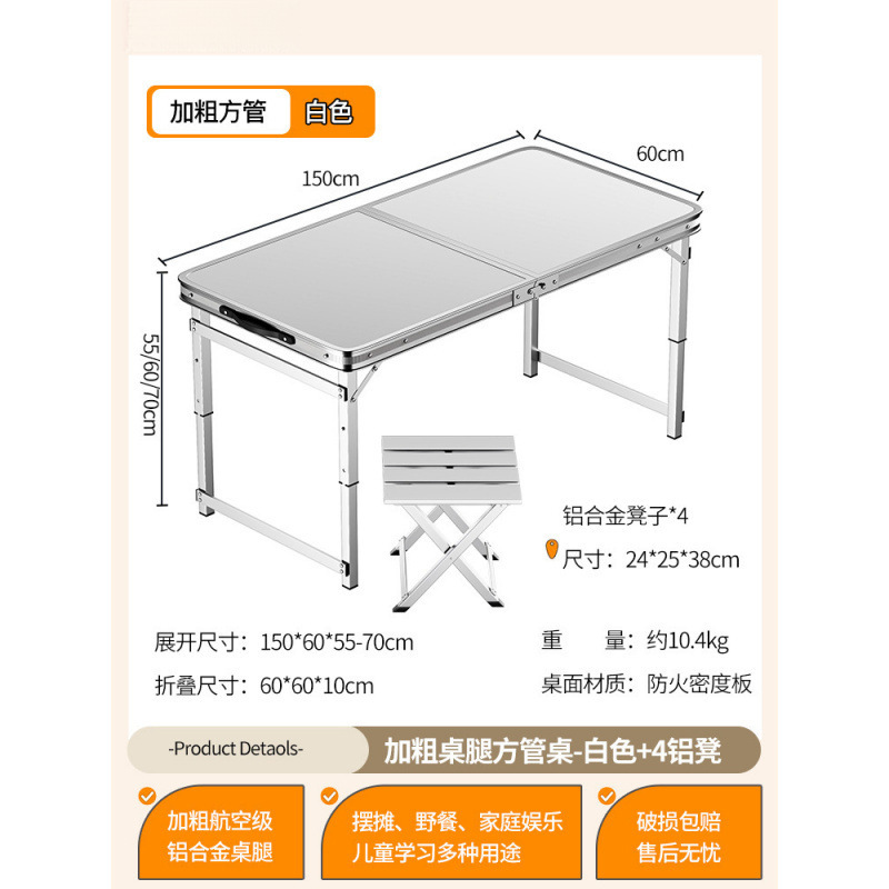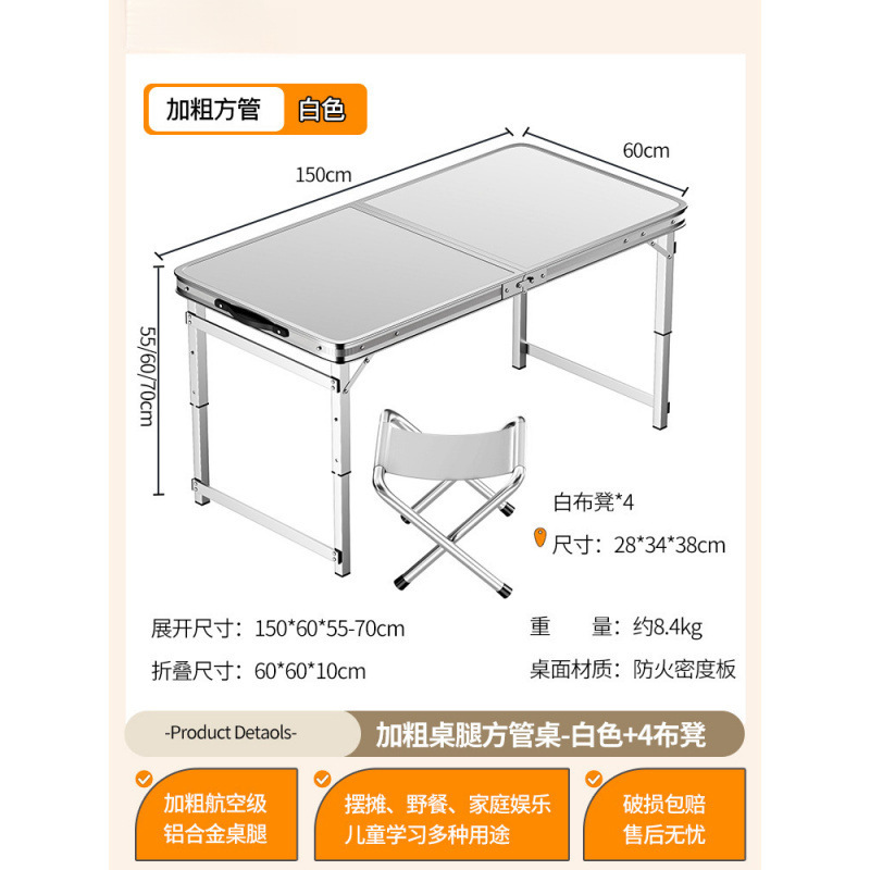 • 업그레이드된 대외 무역 품질 [업그레이드된 알루미늄 합금 사각 튜브] 150*60cm 흰색 + 알루미늄 의자 4개