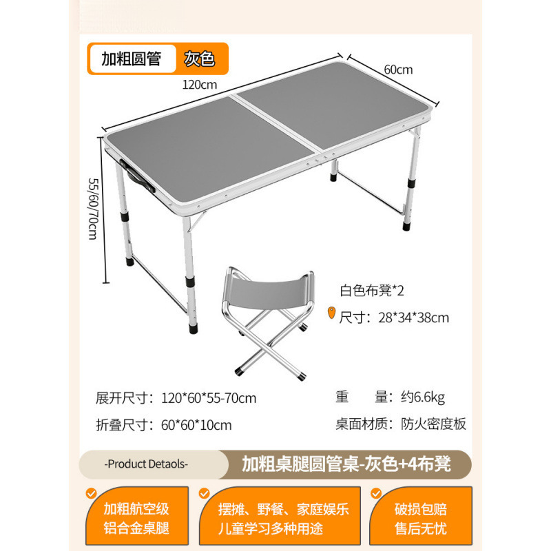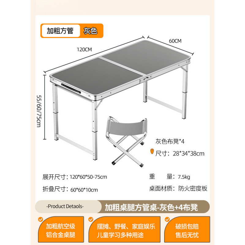 • 업그레이드된 대외 무역 품질 [업그레이드된 알루미늄 합금 사각 튜브] 120*60cm 회색 + 천 의자 4개