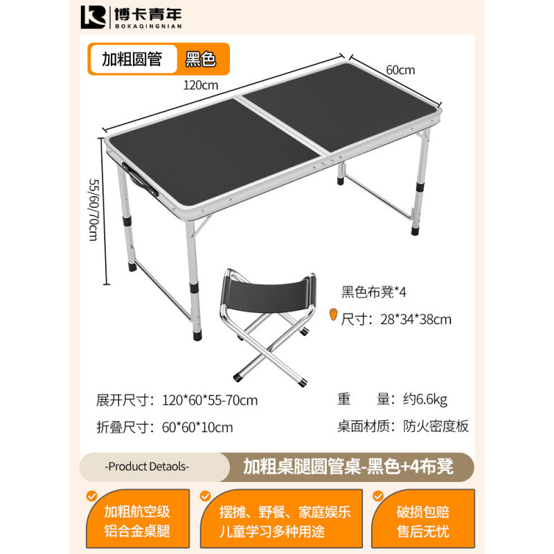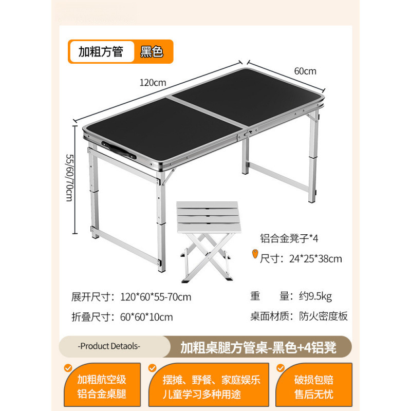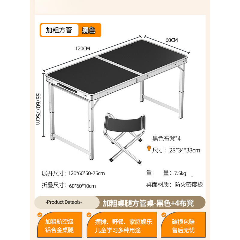 • 업그레이드된 대외 무역 품질 [업그레이드된 알루미늄 합금 사각 튜브] 120*60cm 검정색 + 알루미늄 의자 4개