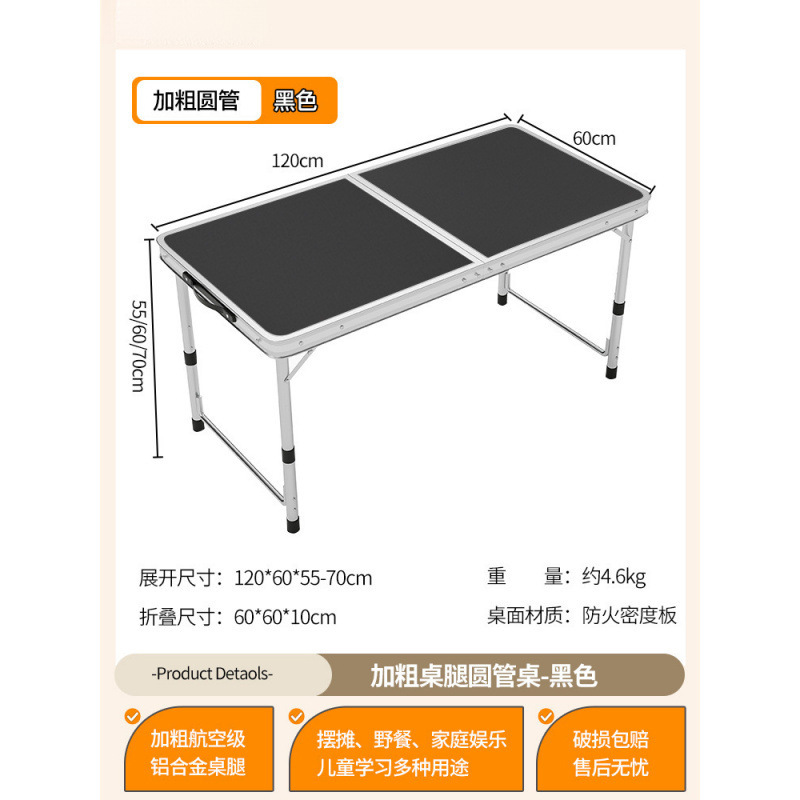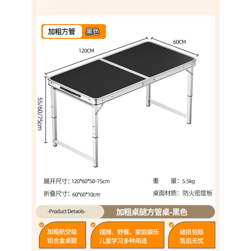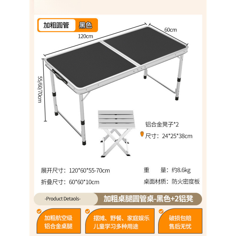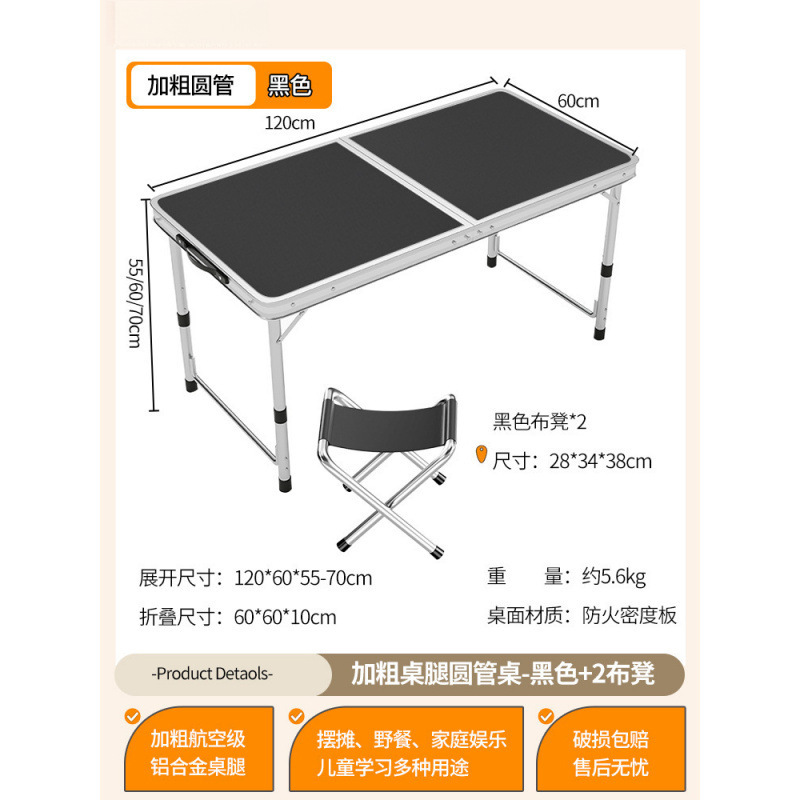 • 업그레이드된 대외 무역 품질 [업그레이드된 알루미늄 합금 사각 튜브] 120*60cm 검정색 + 알루미늄 의자 2개