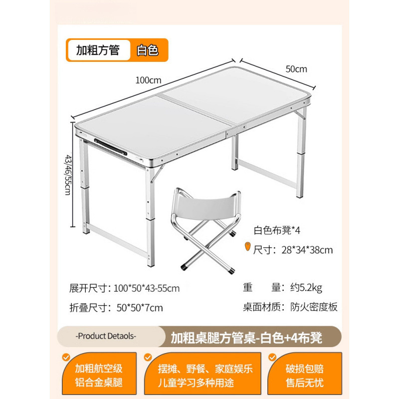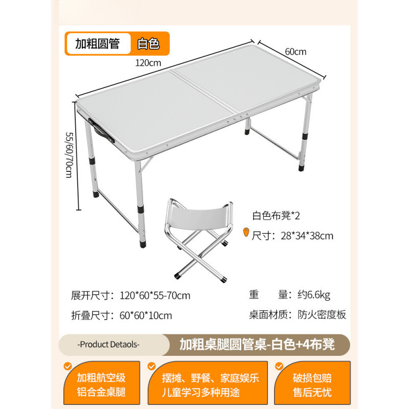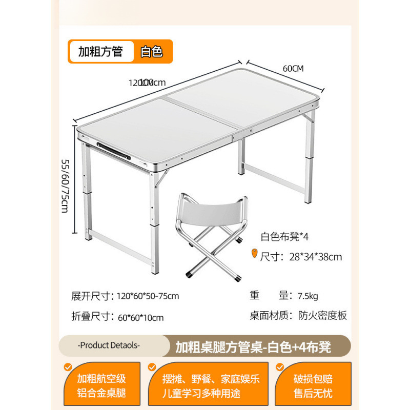 • 업그레이드된 대외 무역 품질 [업그레이드된 알루미늄 합금 사각 튜브] 120*60cm 흰색 + 알루미늄 의자 4개