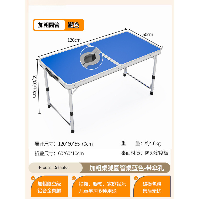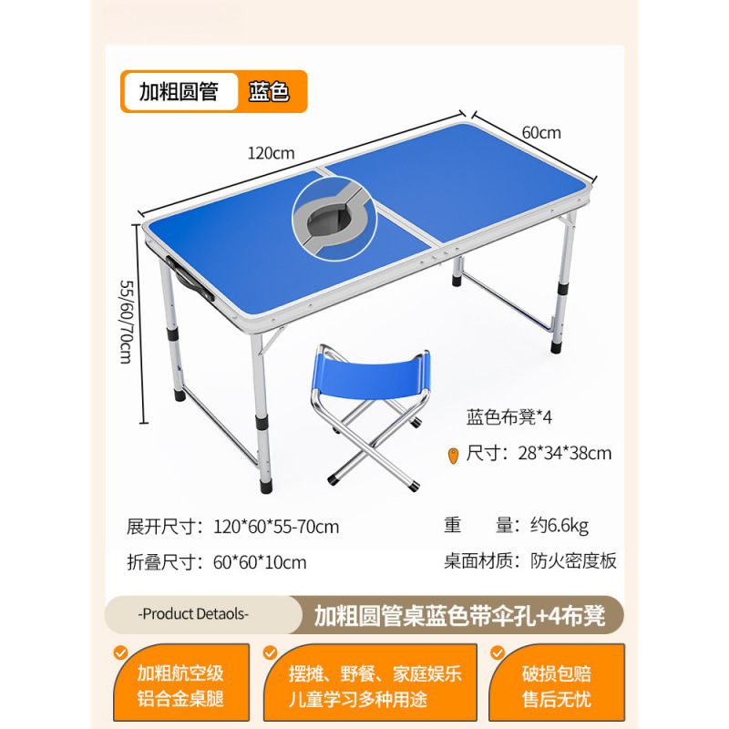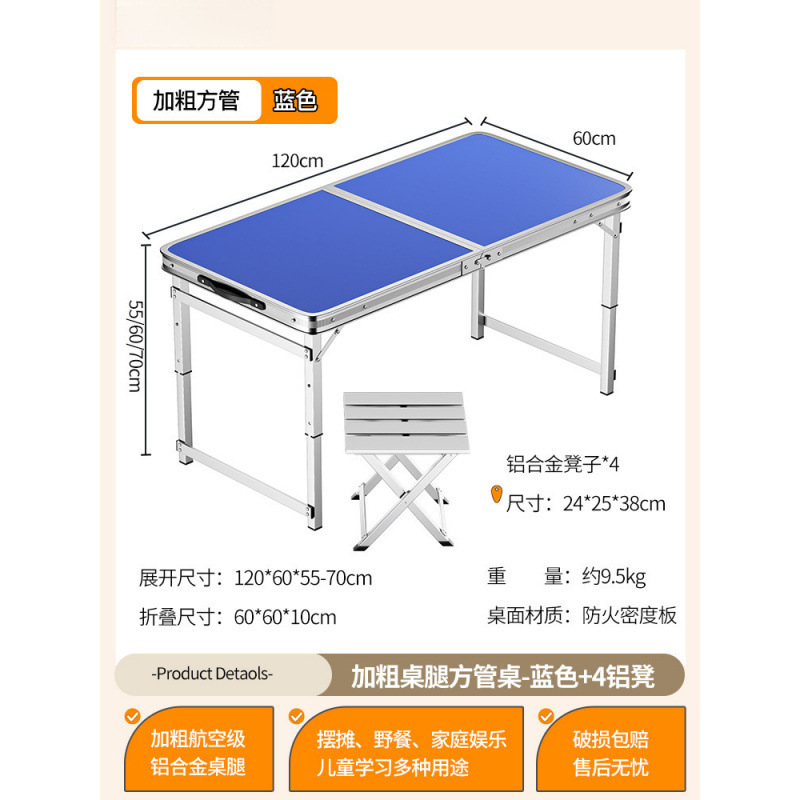 • 업그레이드된 대외 무역 품질 [업그레이드된 알루미늄 합금 사각 튜브] 120*60cm 파란색 + 알루미늄 의자 4개