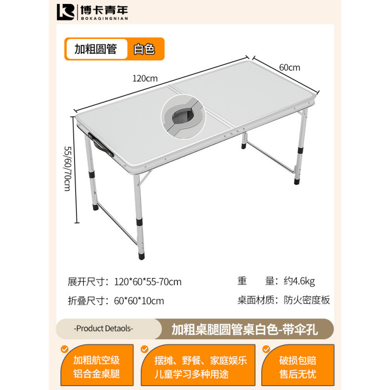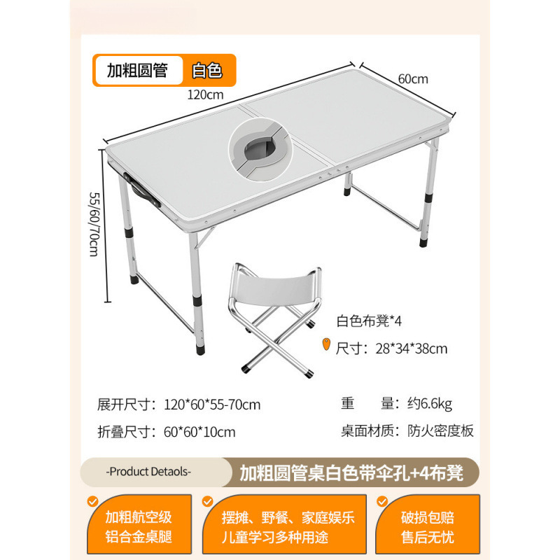 • 업그레이드된 대외 무역 품질 [알루미늄 합금 원형 튜브] 120*60cm 흰색, 우산 구멍 + 천 의자 4개