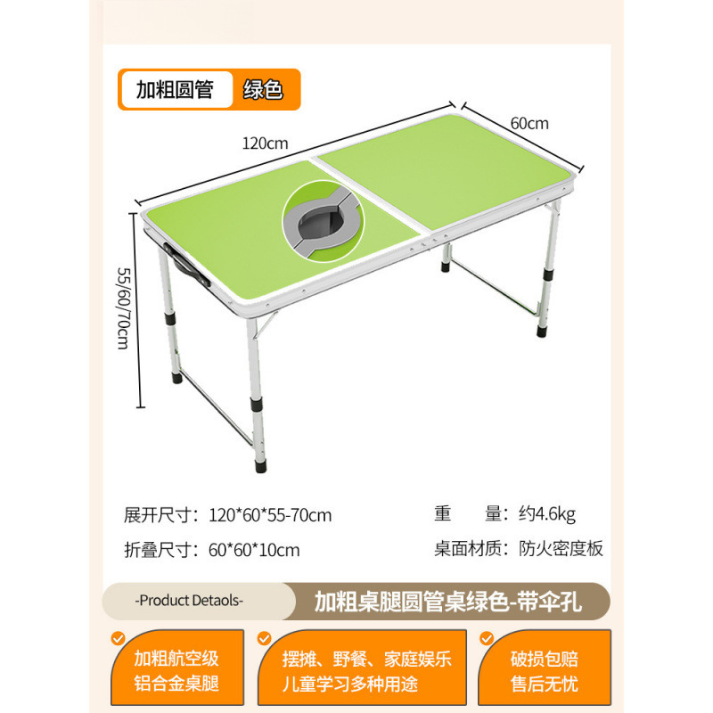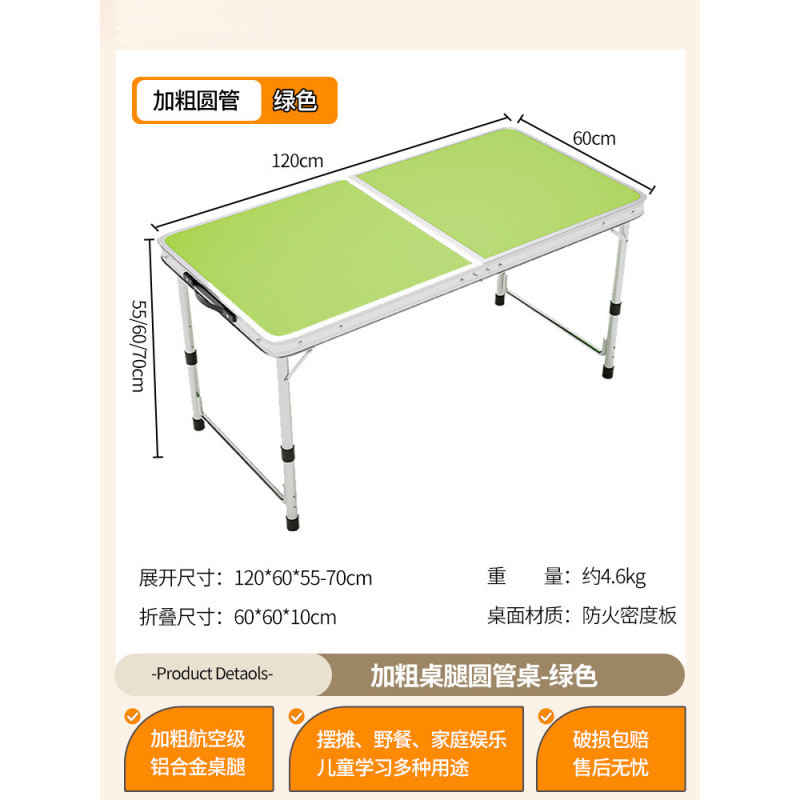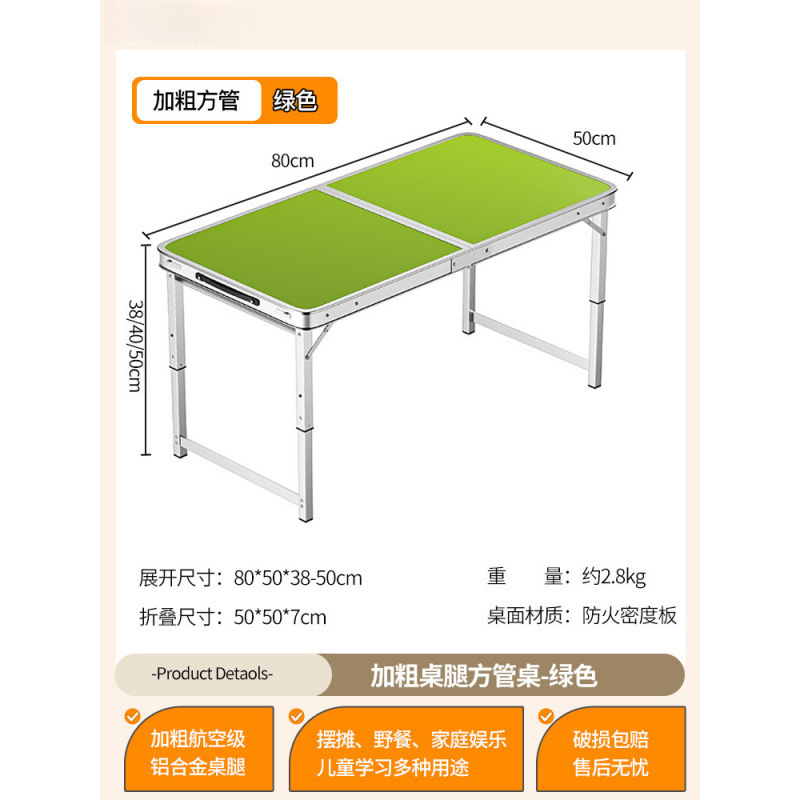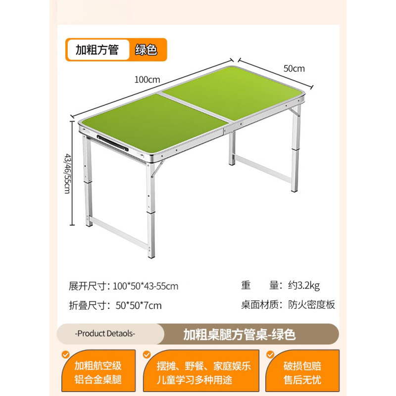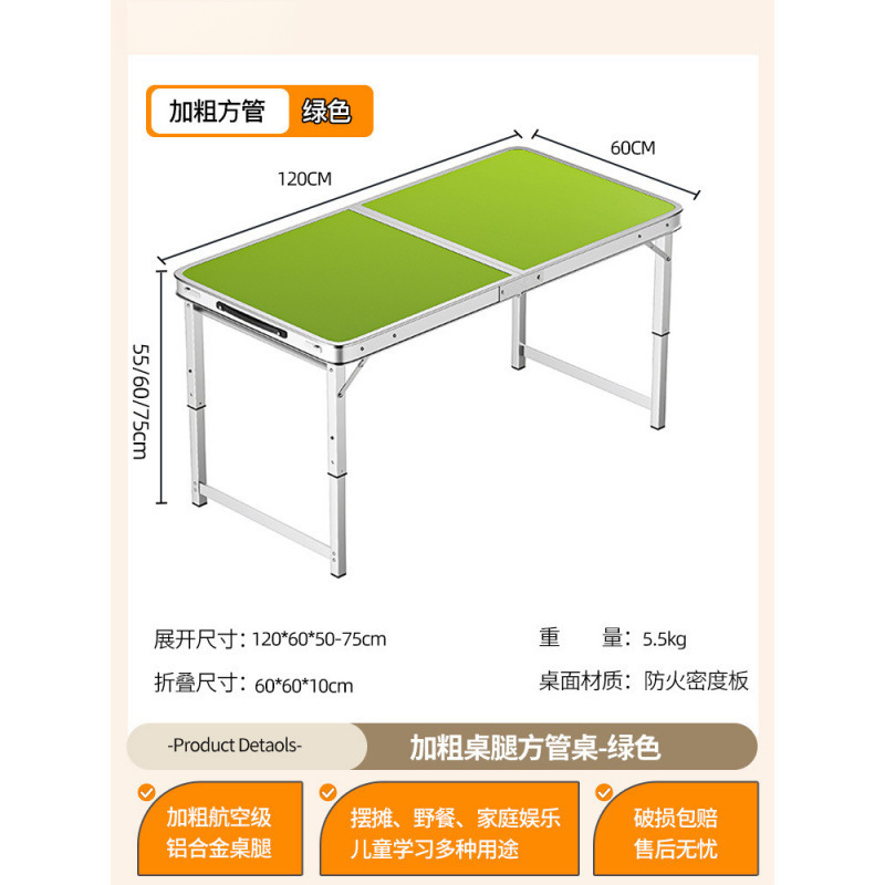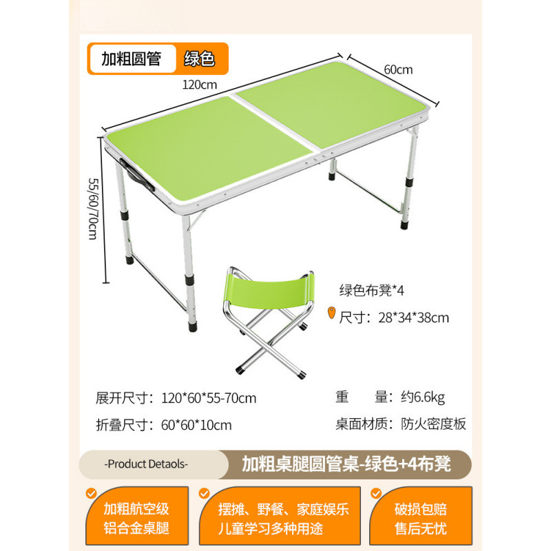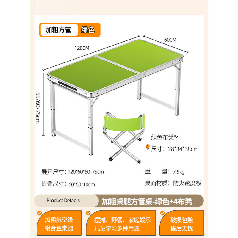 • 업그레이드된 대외 무역 품질 [업그레이드된 알루미늄 합금 사각 튜브] 120*60cm 녹색 + 알루미늄 의자 4개