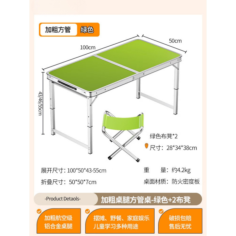 • 업그레이드된 대외 무역 품질 [업그레이드된 알루미늄 합금 사각 튜브] 120*60cm 녹색 + 알루미늄 의자 2개
