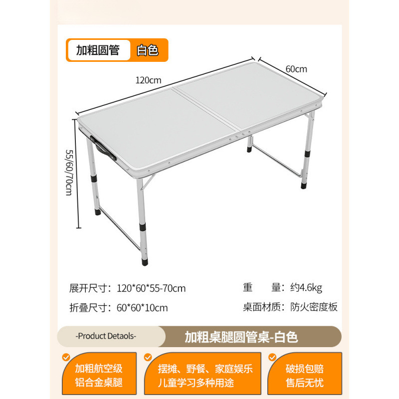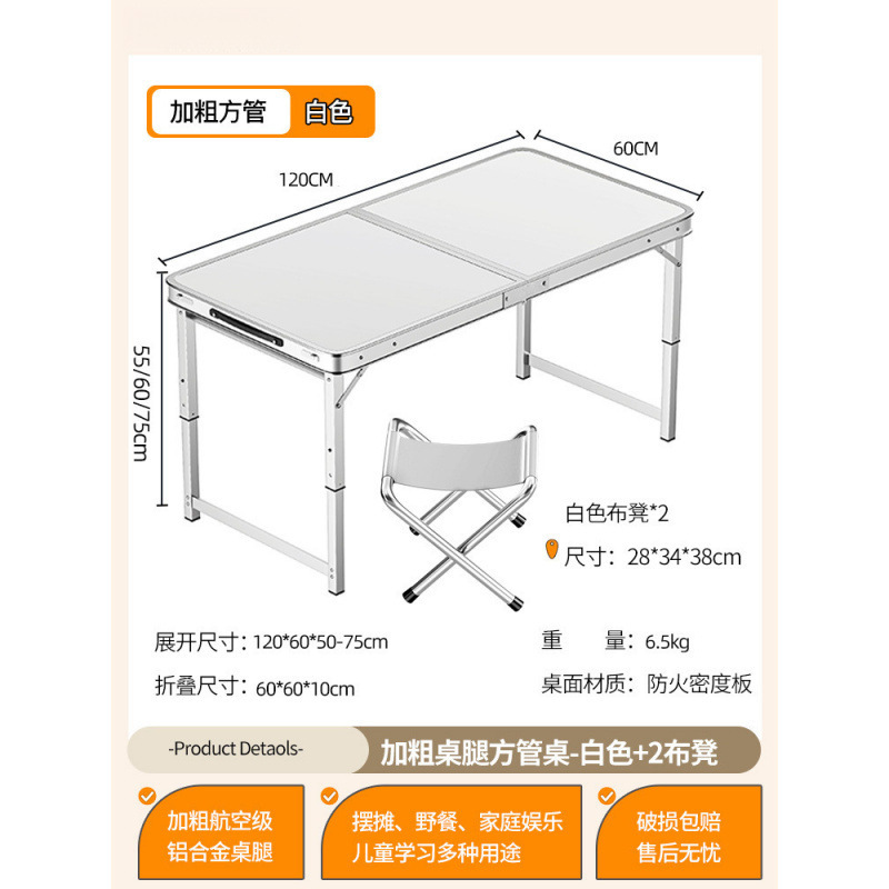 • 업그레이드된 대외 무역 품질 [업그레이드된 알루미늄 합금 사각 튜브] 120*60cm 흰색 + 알루미늄 의자 2개