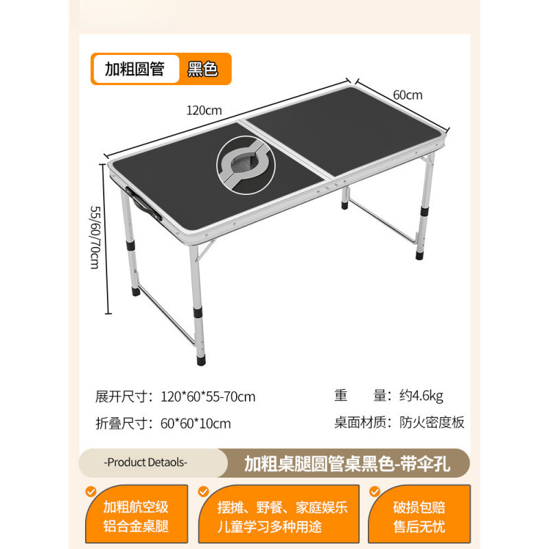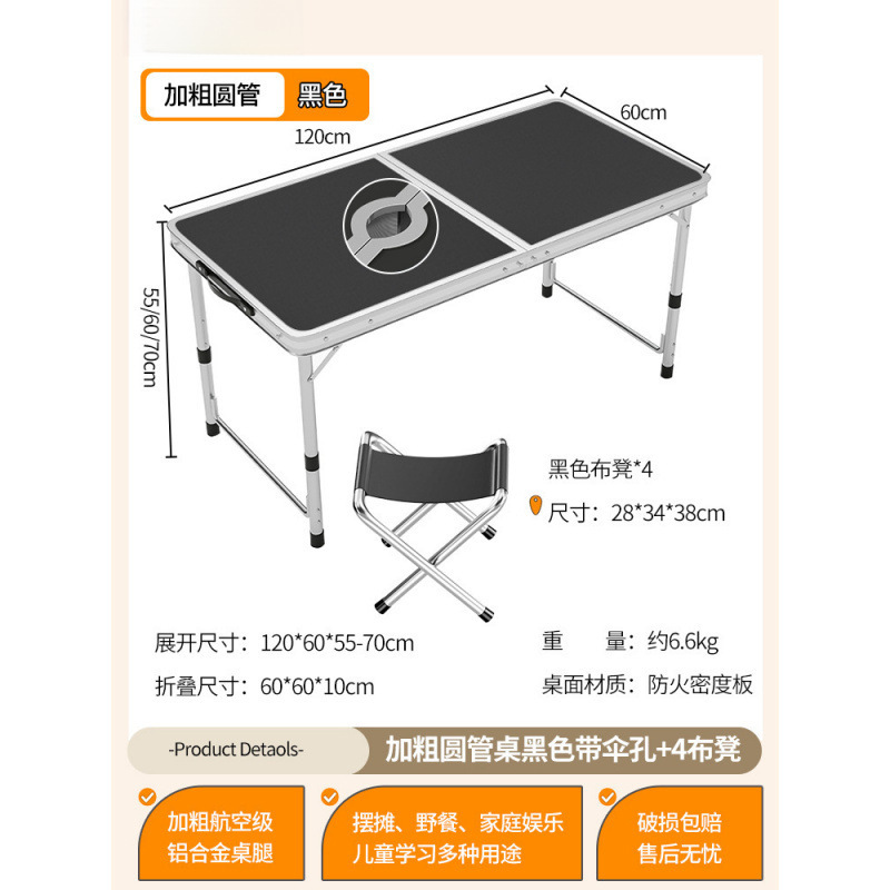• 업그레이드된 대외 무역 품질 [알루미늄 합금 원형 튜브] 120*60cm 검정색 우산 구멍 + 천 의자 4개