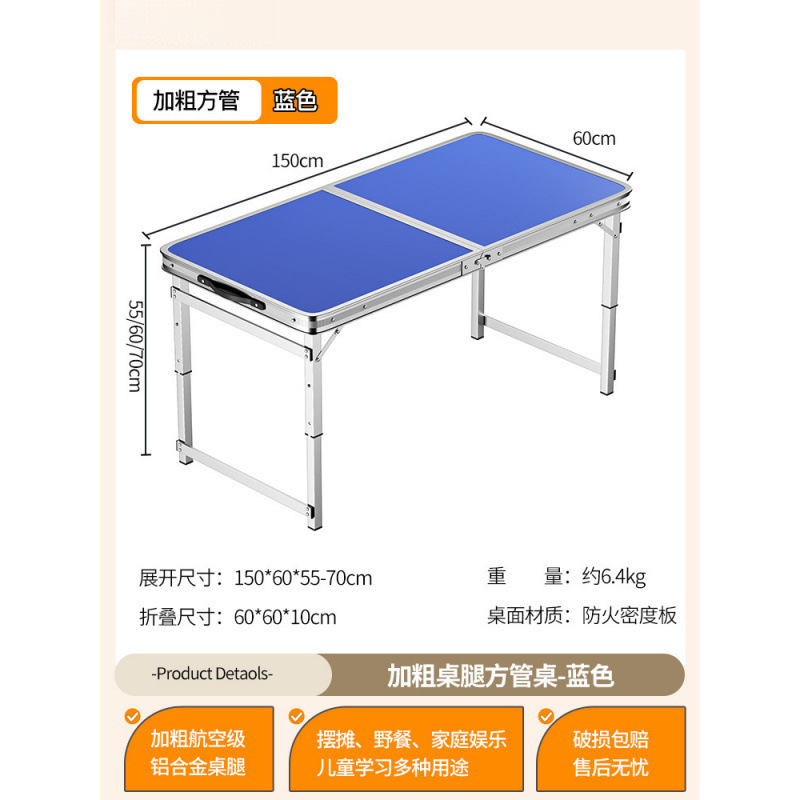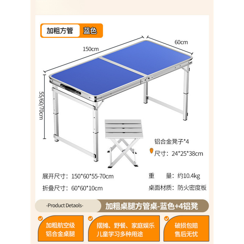 • 업그레이드된 대외 무역 품질 [업그레이드된 알루미늄 합금 사각 튜브] 150*60cm 파란색 + 알루미늄 의자 4개