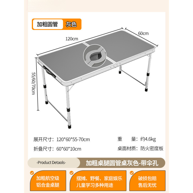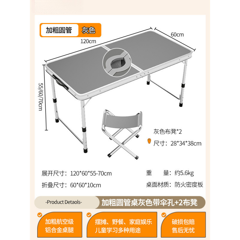 • 업그레이드된 대외 무역 품질 [알루미늄 합금 원형 튜브] 120*60cm 회색 우산 구멍 + 천 의자 4개