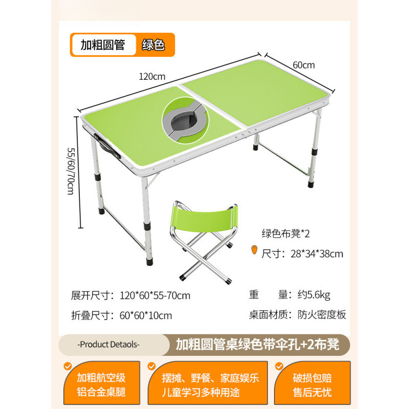 • 업그레이드된 대외 무역 품질 [알루미늄 합금 원형 튜브] 120*60cm 녹색 우산 구멍 + 천 의자 2개