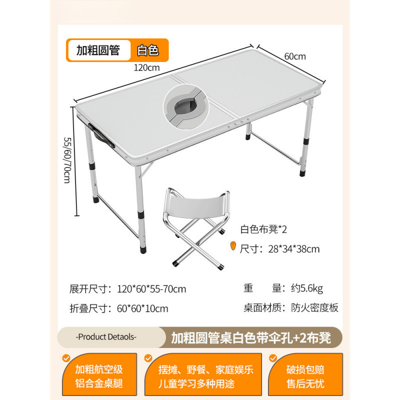 • 업그레이드된 대외 무역 품질 [알루미늄 합금 원형 튜브] 120*60cm 흰색, 우산 구멍 + 천 의자 2개