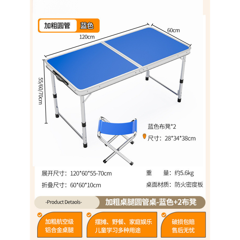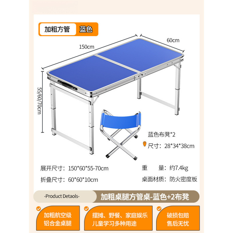 • 업그레이드된 대외 무역 품질 [업그레이드된 알루미늄 합금 사각 튜브] 120*60cm 파란색 + 알루미늄 의자 2개