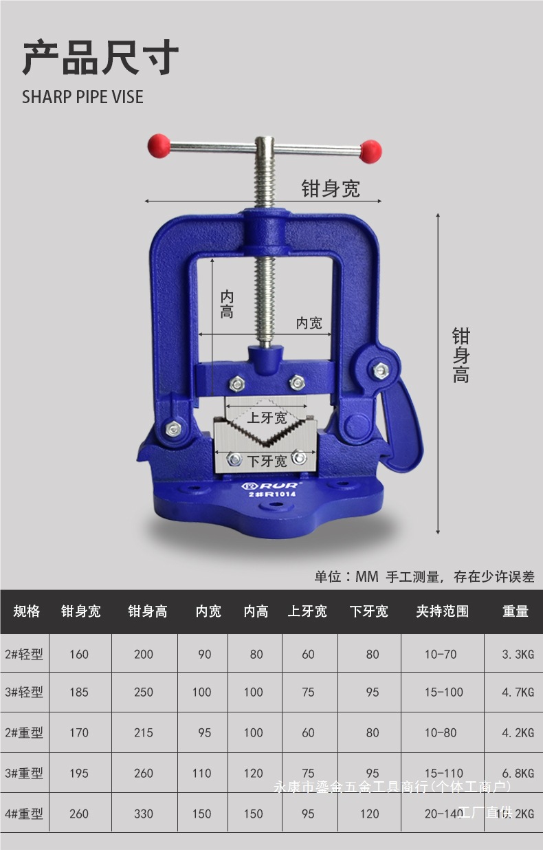 • 1 # 견고한 벤치 바이스(클램핑 범위 10-60mm)