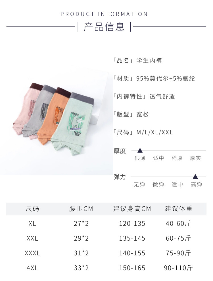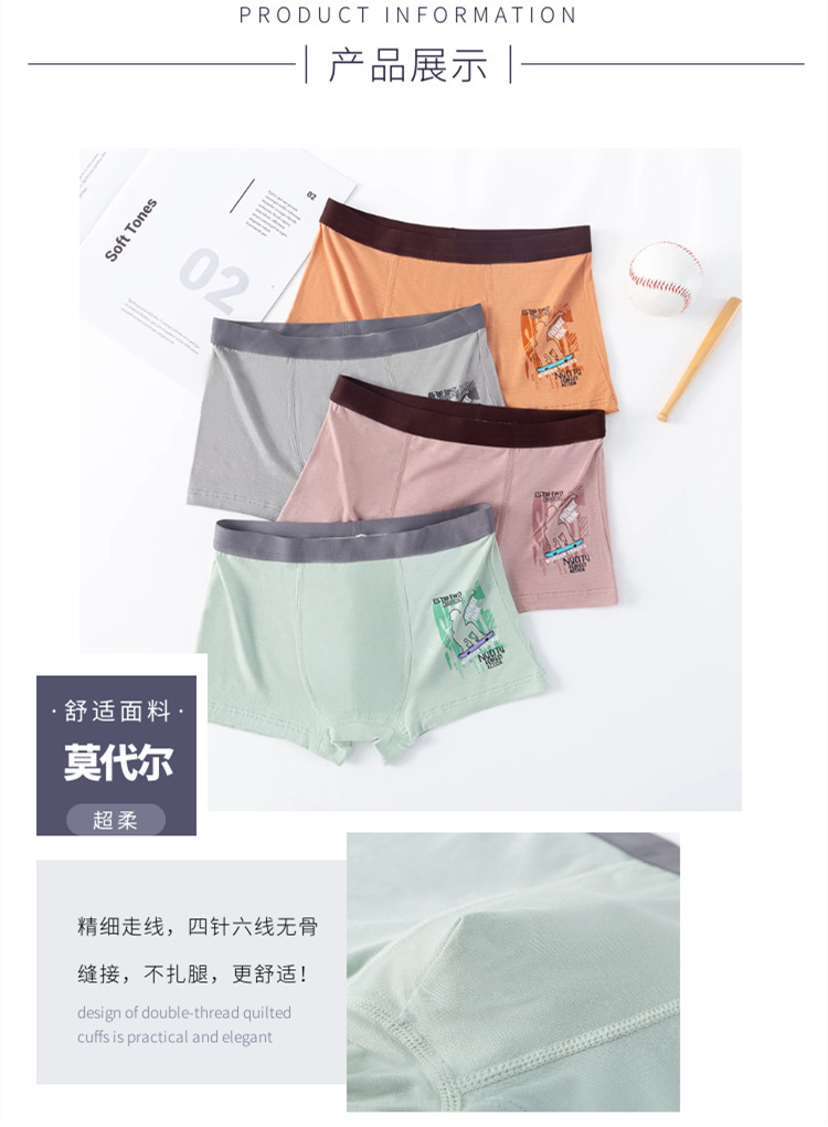 5-17세 남아용 아동 속옷, 중대형 아동용 얇은 PP 모달 면 사각팬티 항균 도매스토어 가기