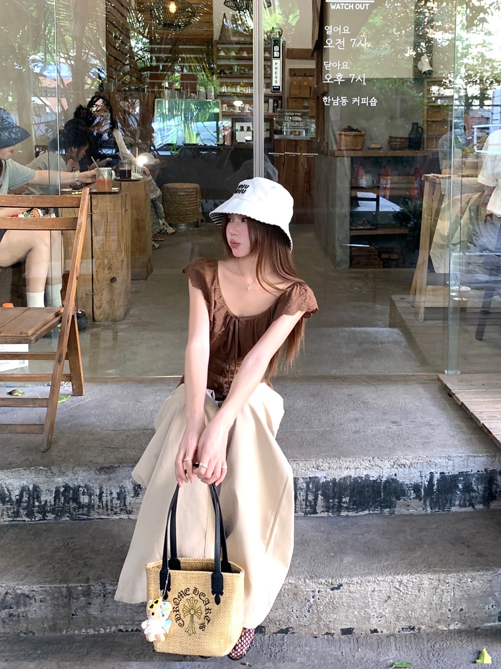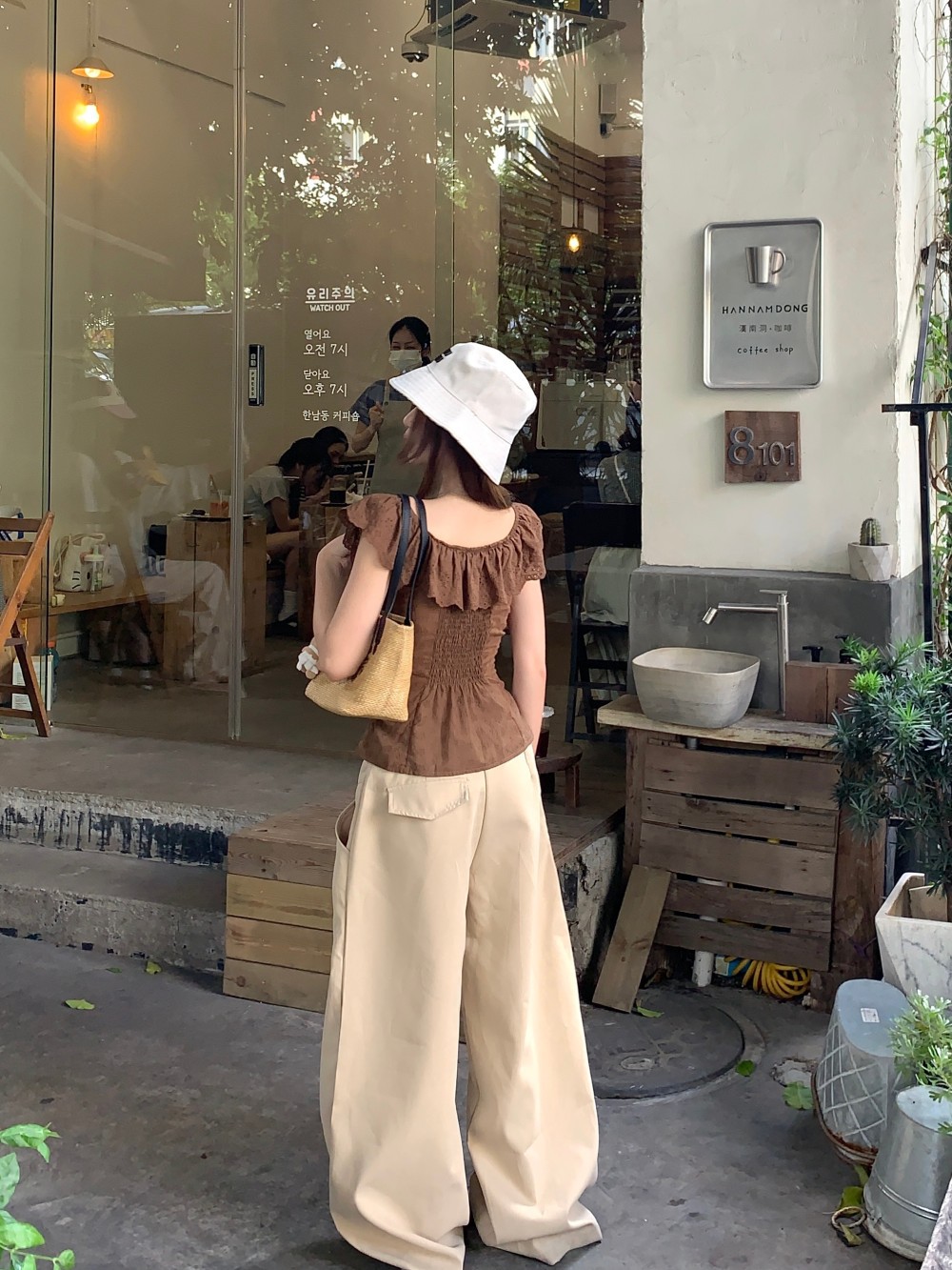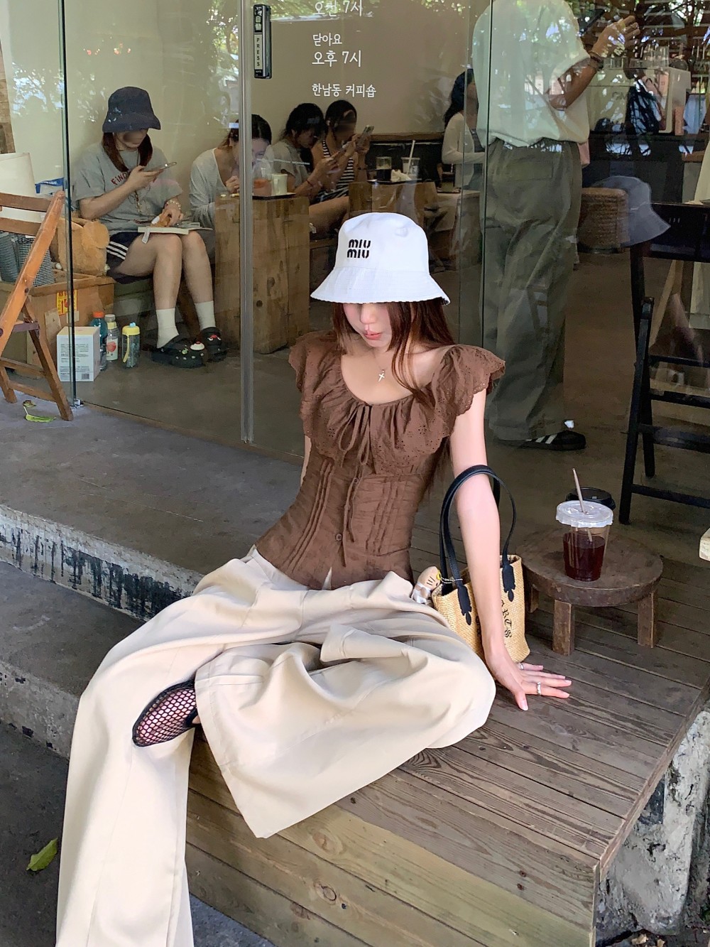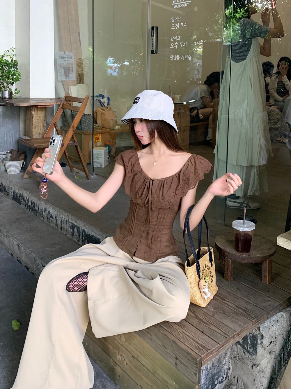 프렌치 스타일의 순수한 욕망 스타일의 러플 중공 민소매 셔츠 여름 신상품 허리 커버 및 슬리밍 브라운 탑의 실제 사진스토어 가기