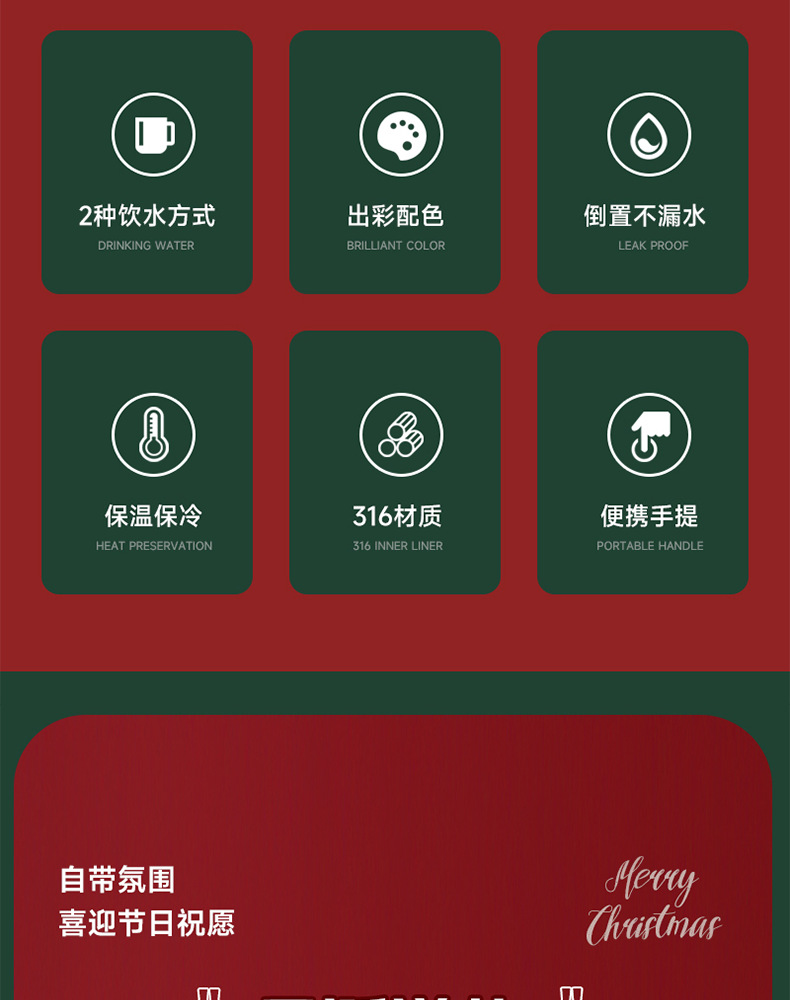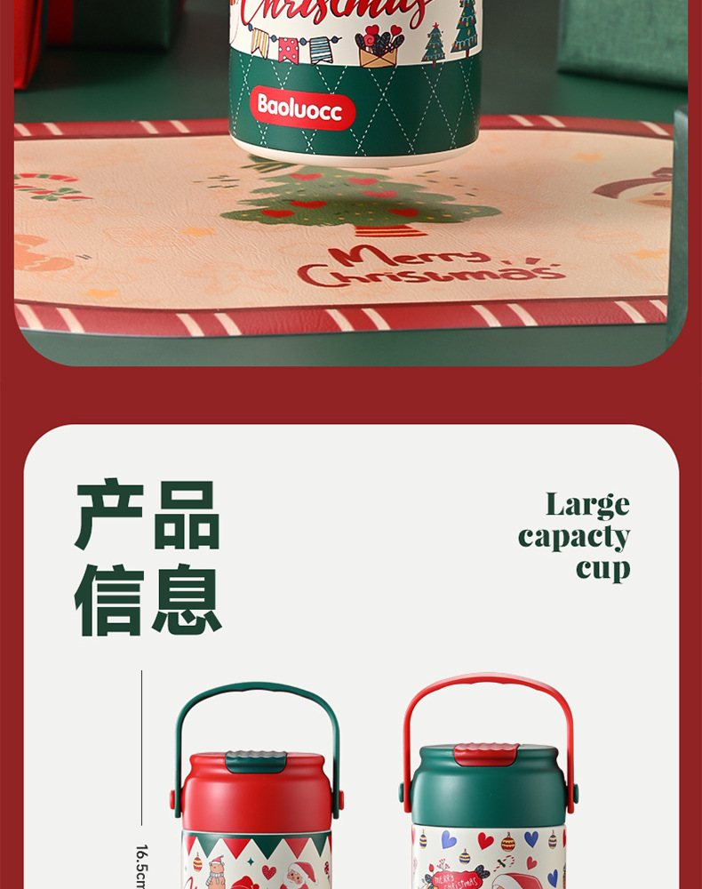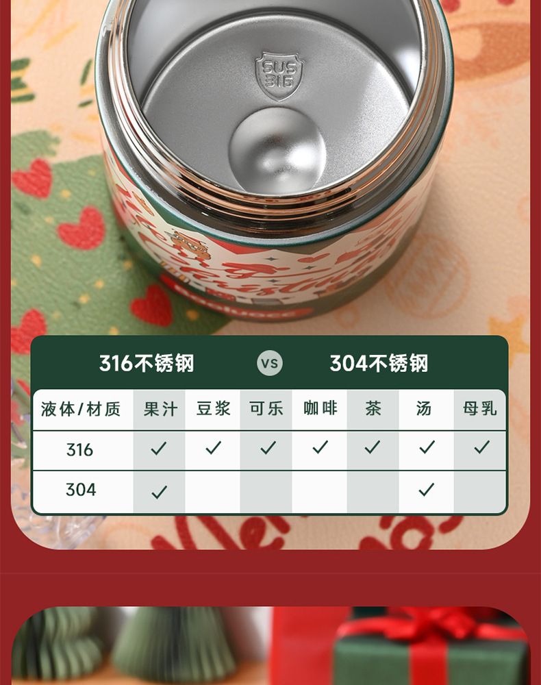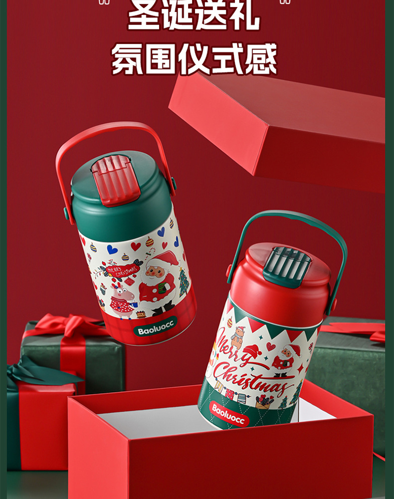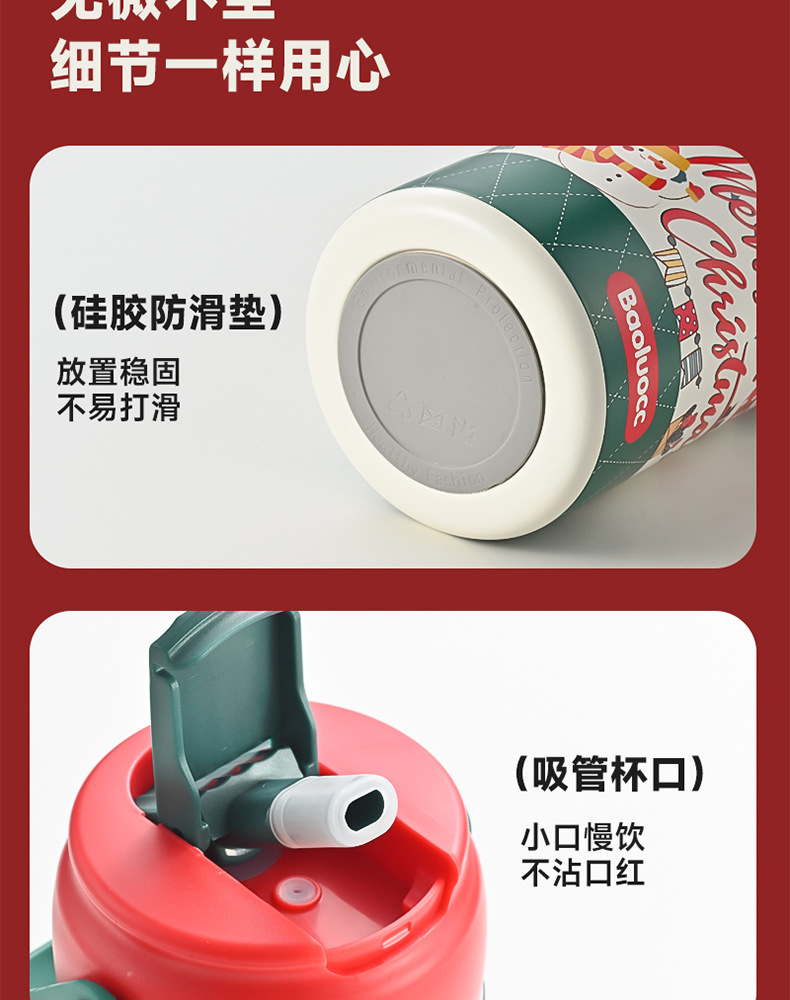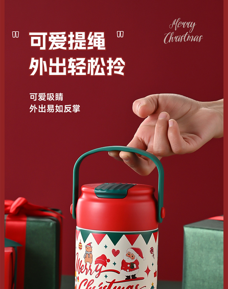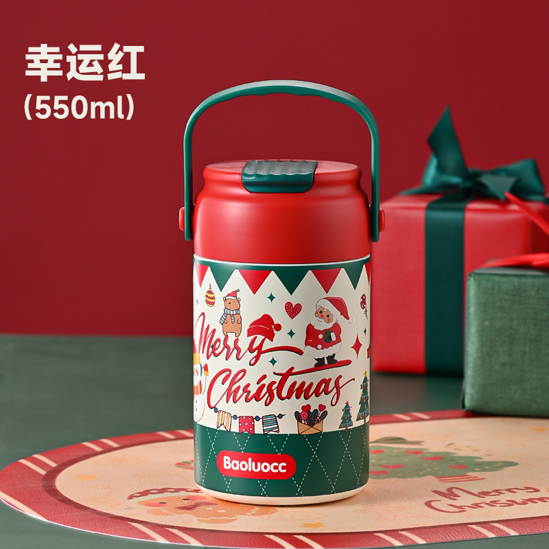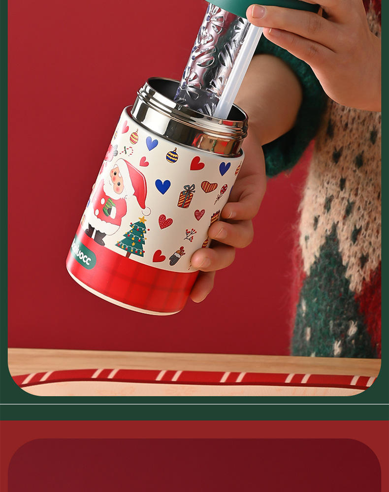 크리스마스 선물 316 스테인레스 스틸 절연 컵 학생 소녀 고급스러운 밀짚 컵 어린이 손잡이 대용량 물 컵스토어 가기