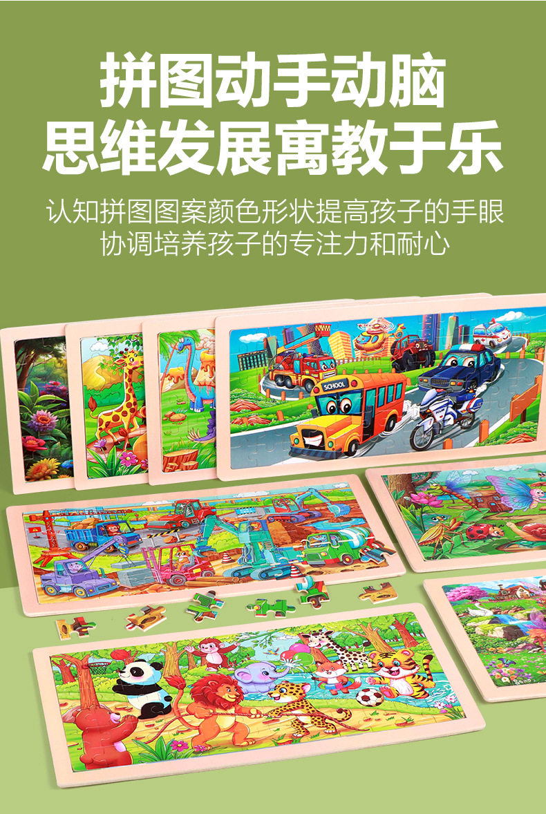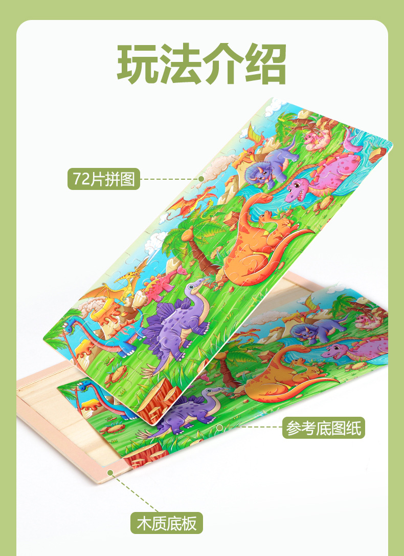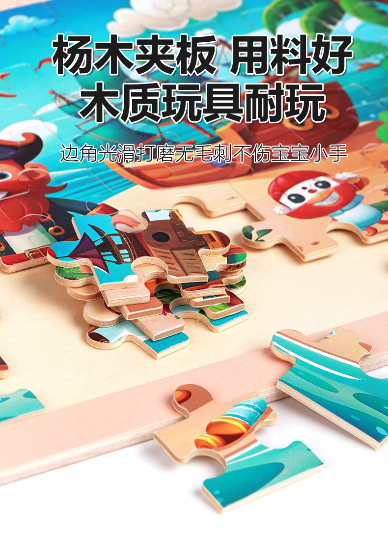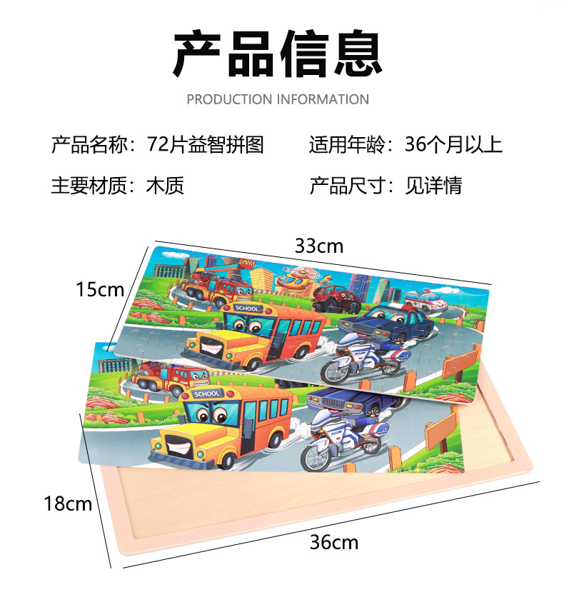 产品名称:72片原木框拼图  单片尺寸36*18*0.5cm  重量0.151kg 装箱数180套  装箱尺寸37*36.5*45cm