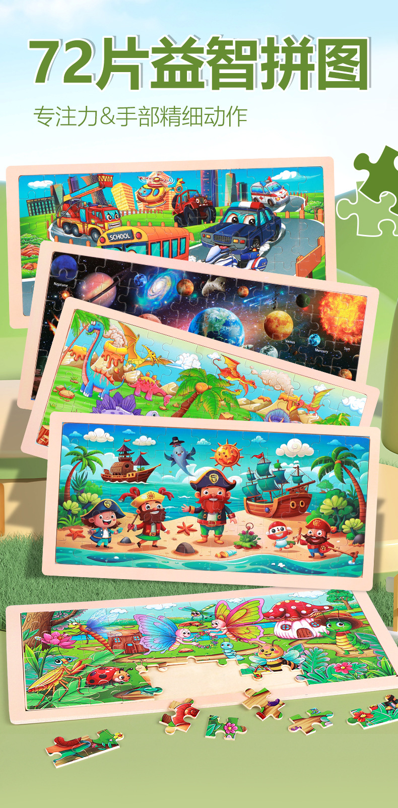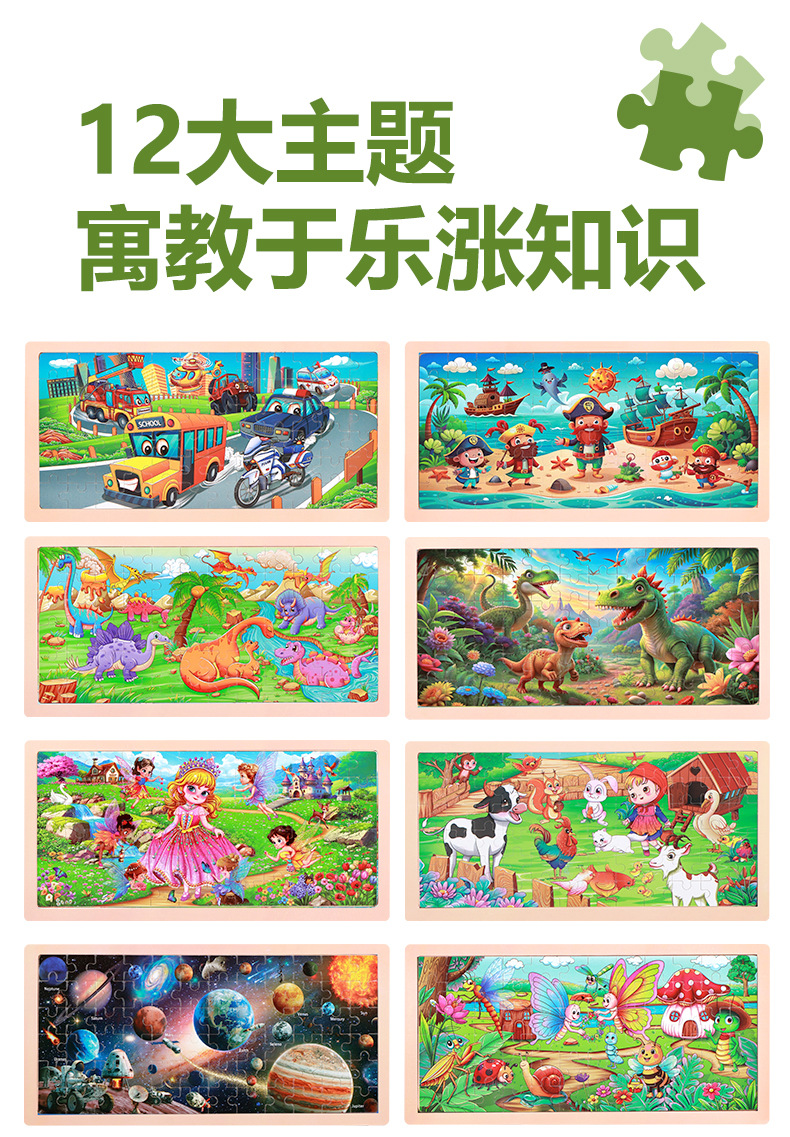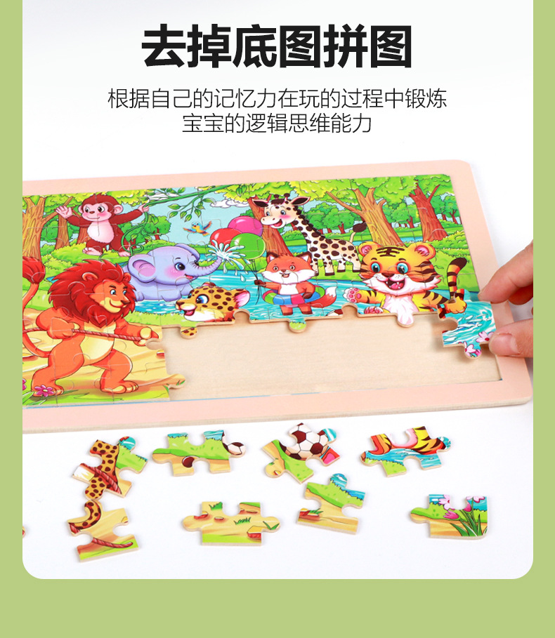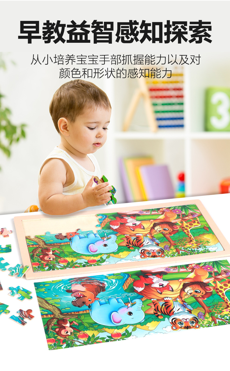 产品名称:72片原木框拼图  单片尺寸36*18*0.5cm  重量0.151kg 装箱数180套  装箱尺寸37*36.5*45cm