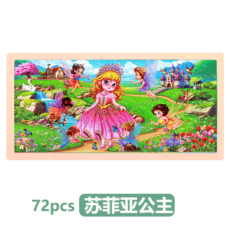 72 조각 나무 퍼즐 어린이 만화 동화 평면 나무 퍼즐 조기 교육 교육 장난감 크로스 보더 아마존스토어 가기